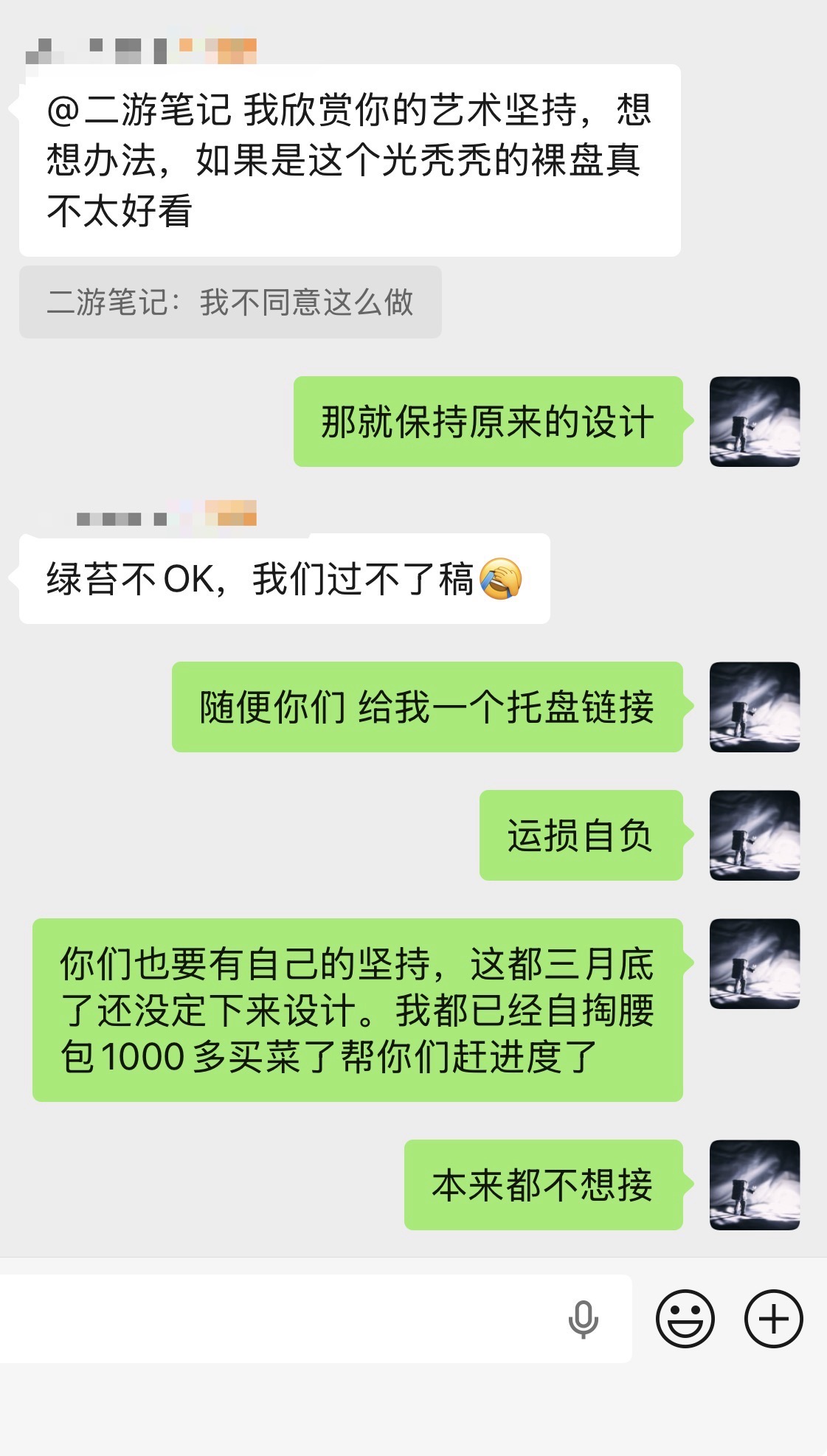 以后再也不接三方的单子了,太墨迹,太没创作自由了