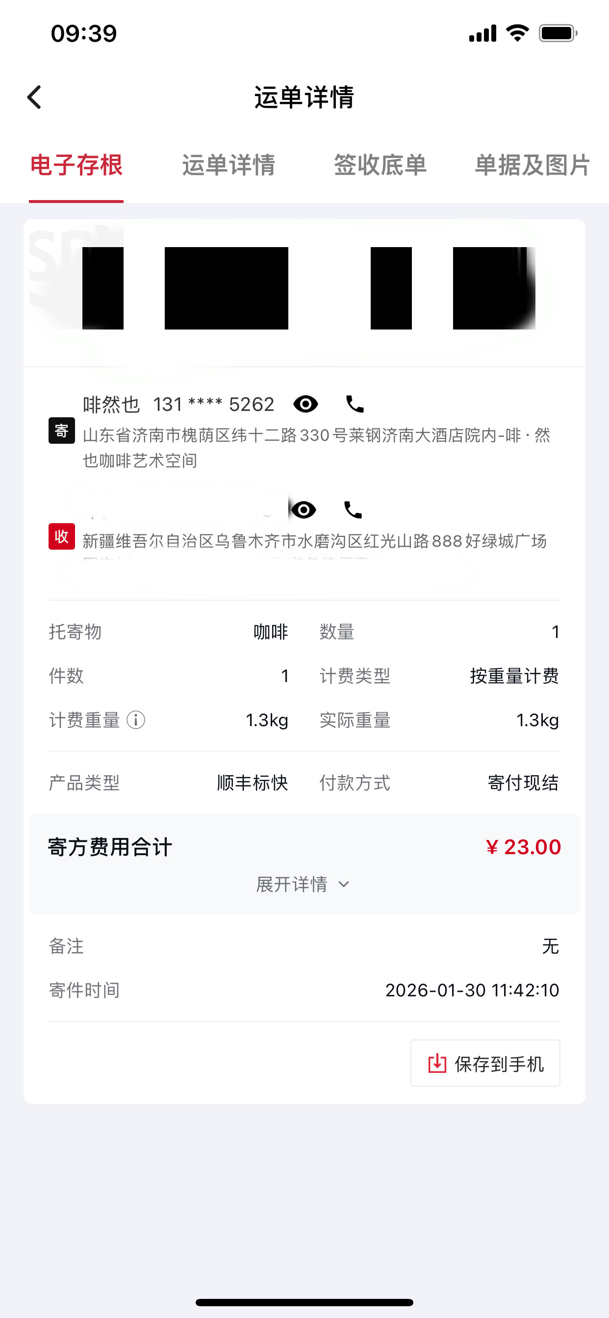 昨天发深圳一件咖啡是申通发的