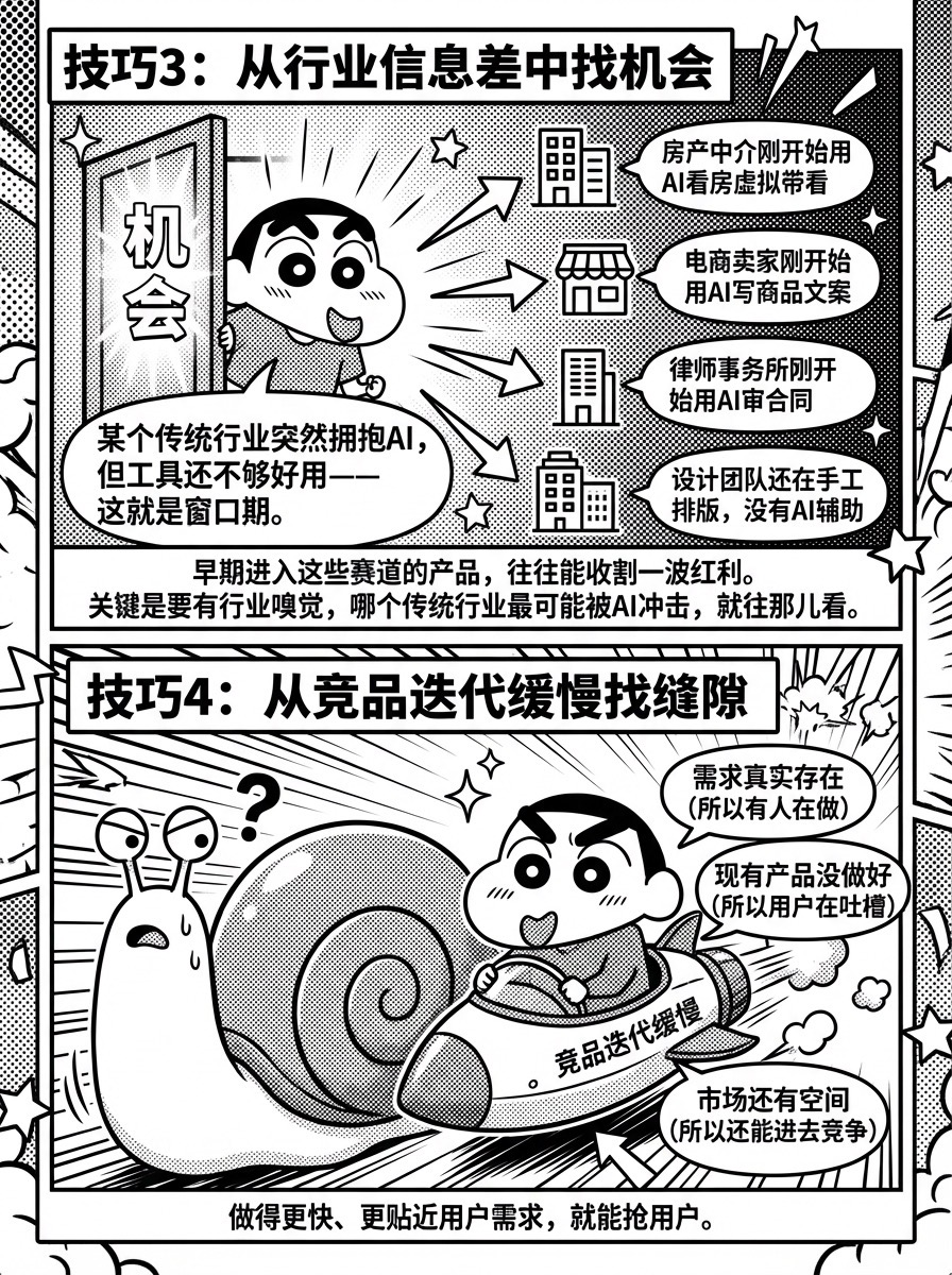 早期进入这些赛道的产品,往往能收割一波红利。这个的关键是要有行业嗅觉,哪个传统行业最可能被AI冲击,就往那儿看。