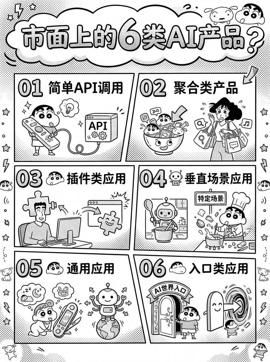 我根据自己的实践和学习通常把现在的AI应用产品分成6类:
