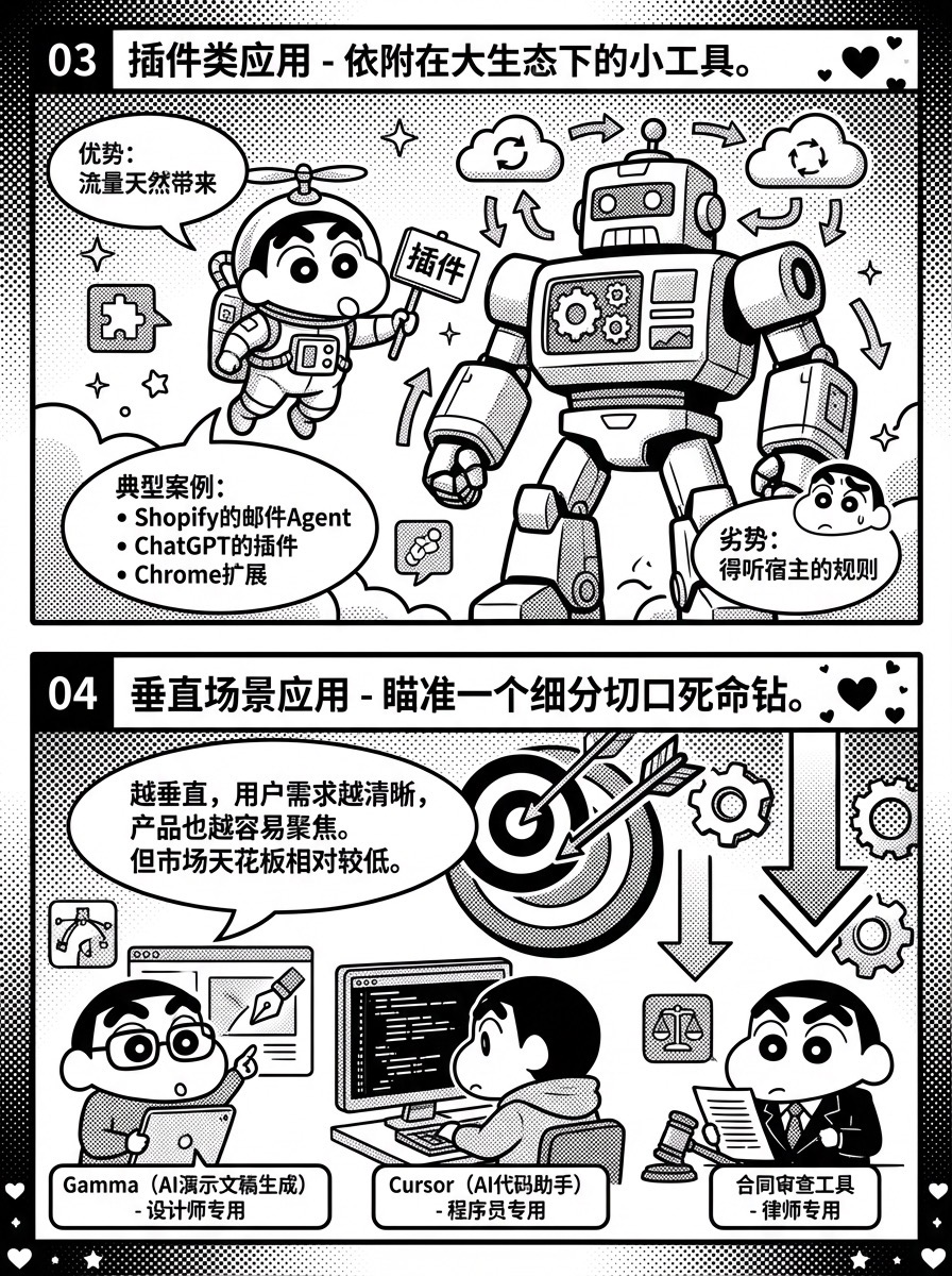 依附在大生态下的小工具。Shopify的邮件Agent、ChatGPT的插件……流量天然带来,但也得听宿主的规则。