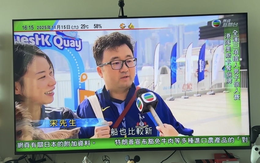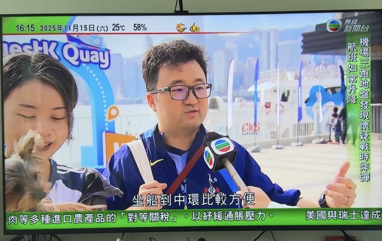 携查理上镜香港电视,热心市民宋先生向TVB记者大赞香港新基建设施