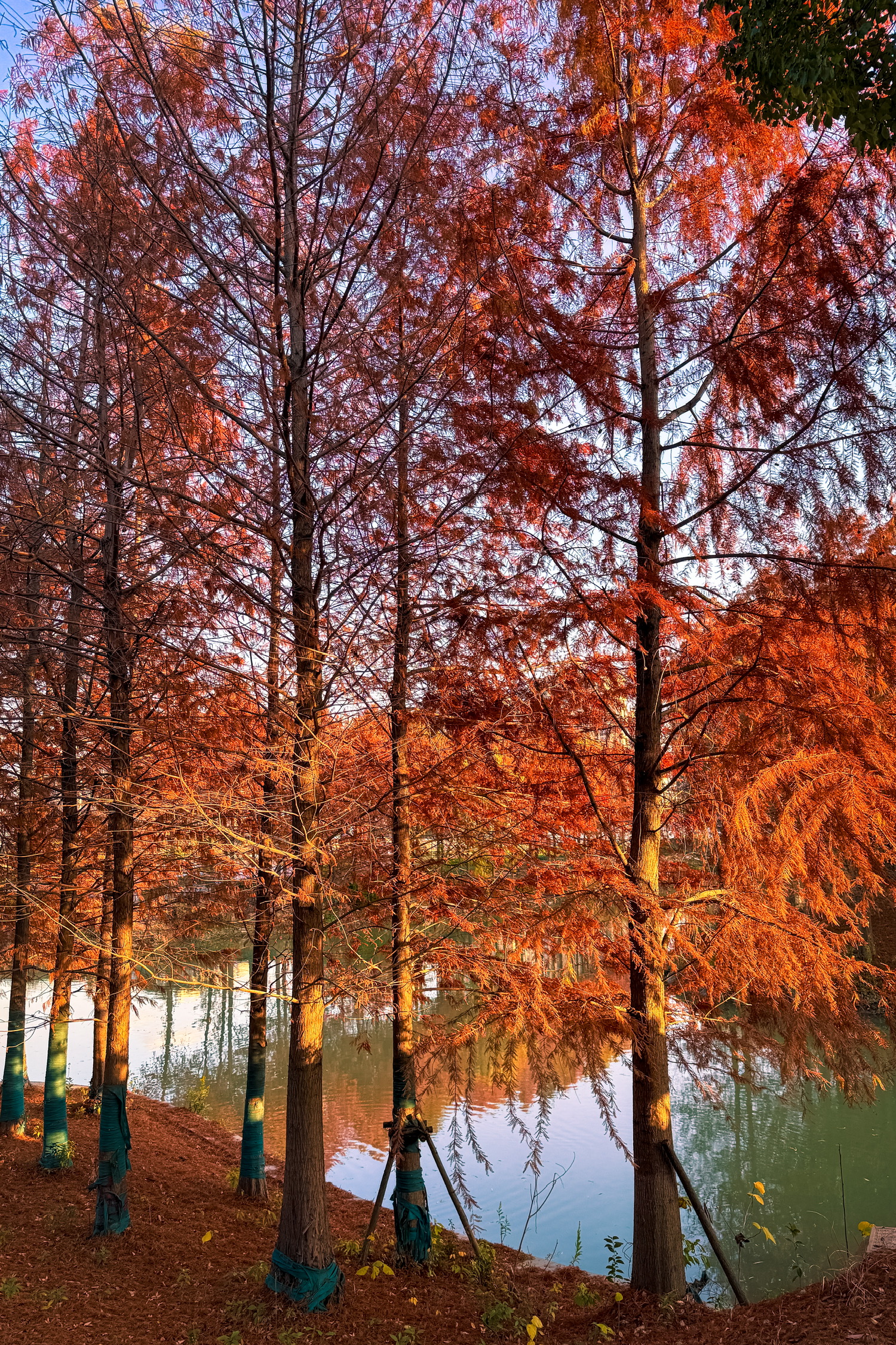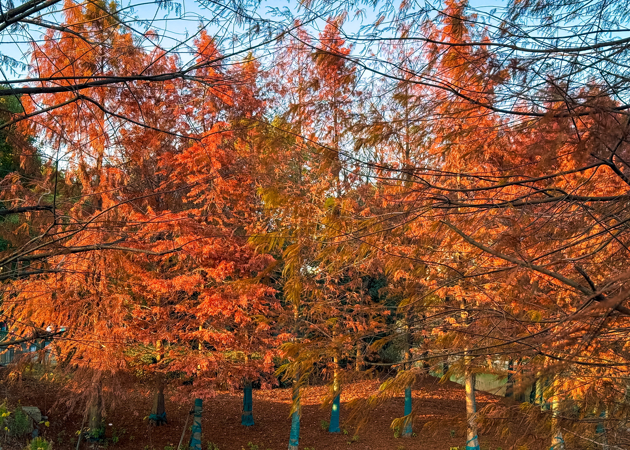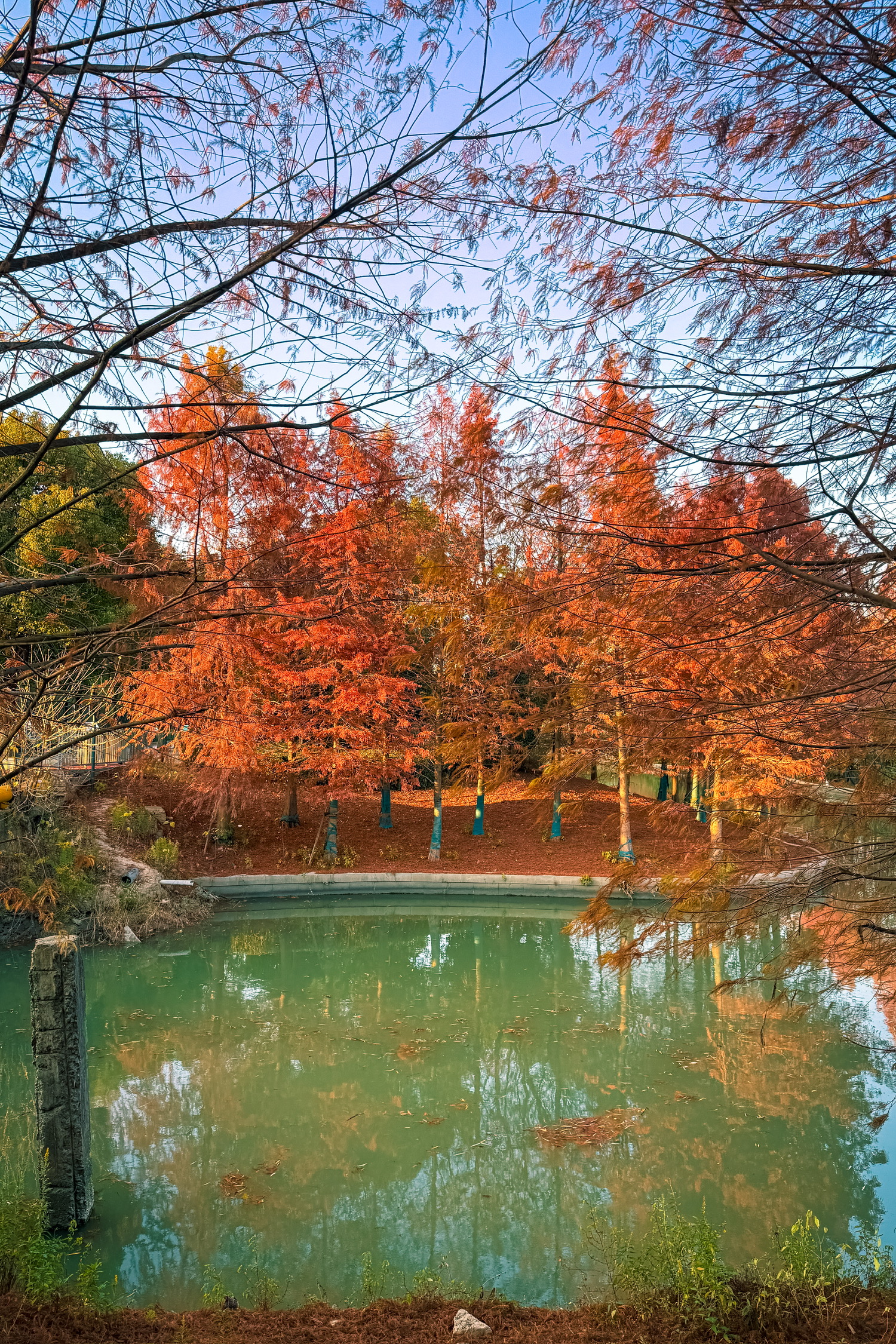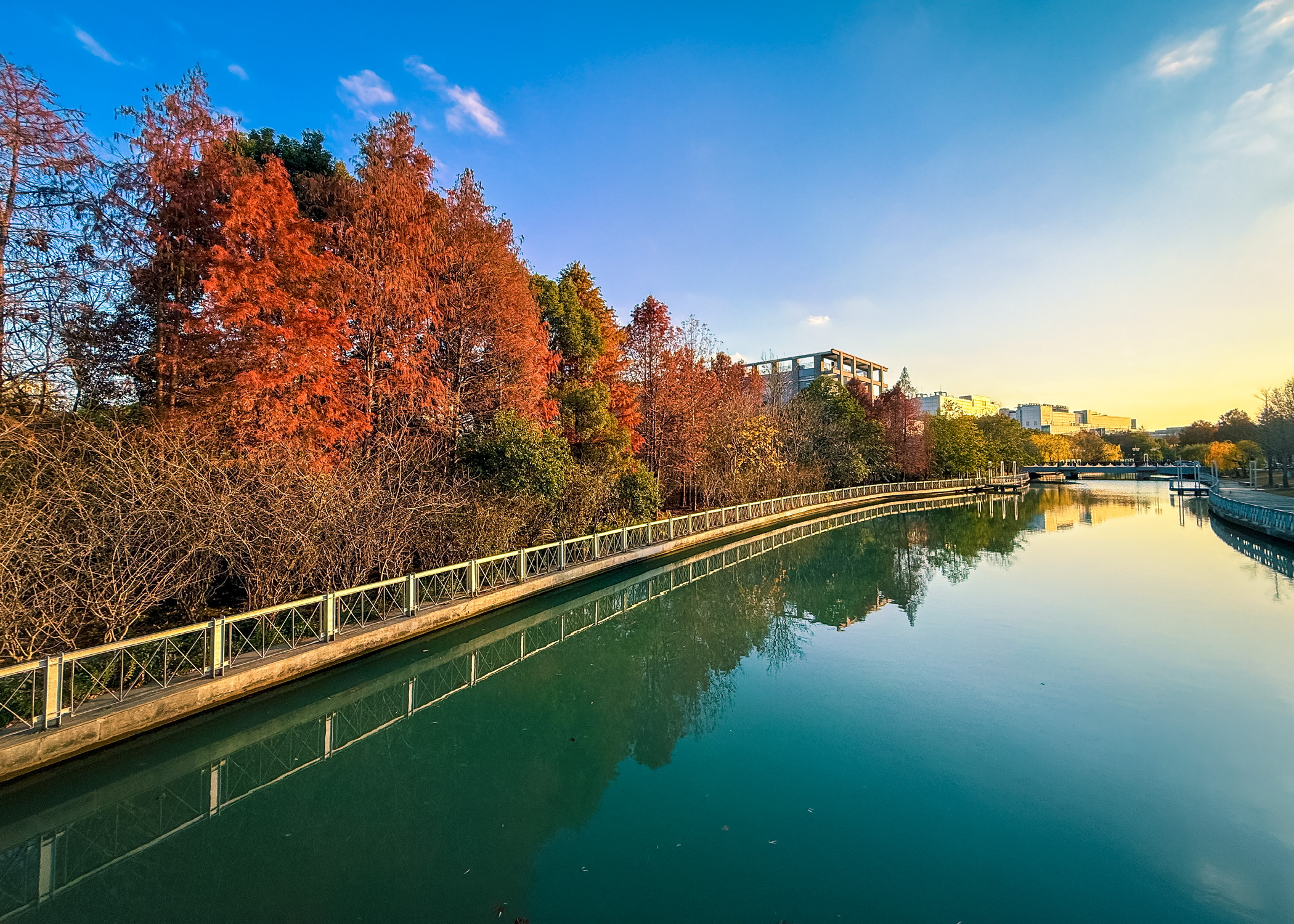 路过虹梅南路与东川路、紫凤路当中一座桥,回头瞥见桥下一片红杉秘境,在日落的照映下显得那么的好看。