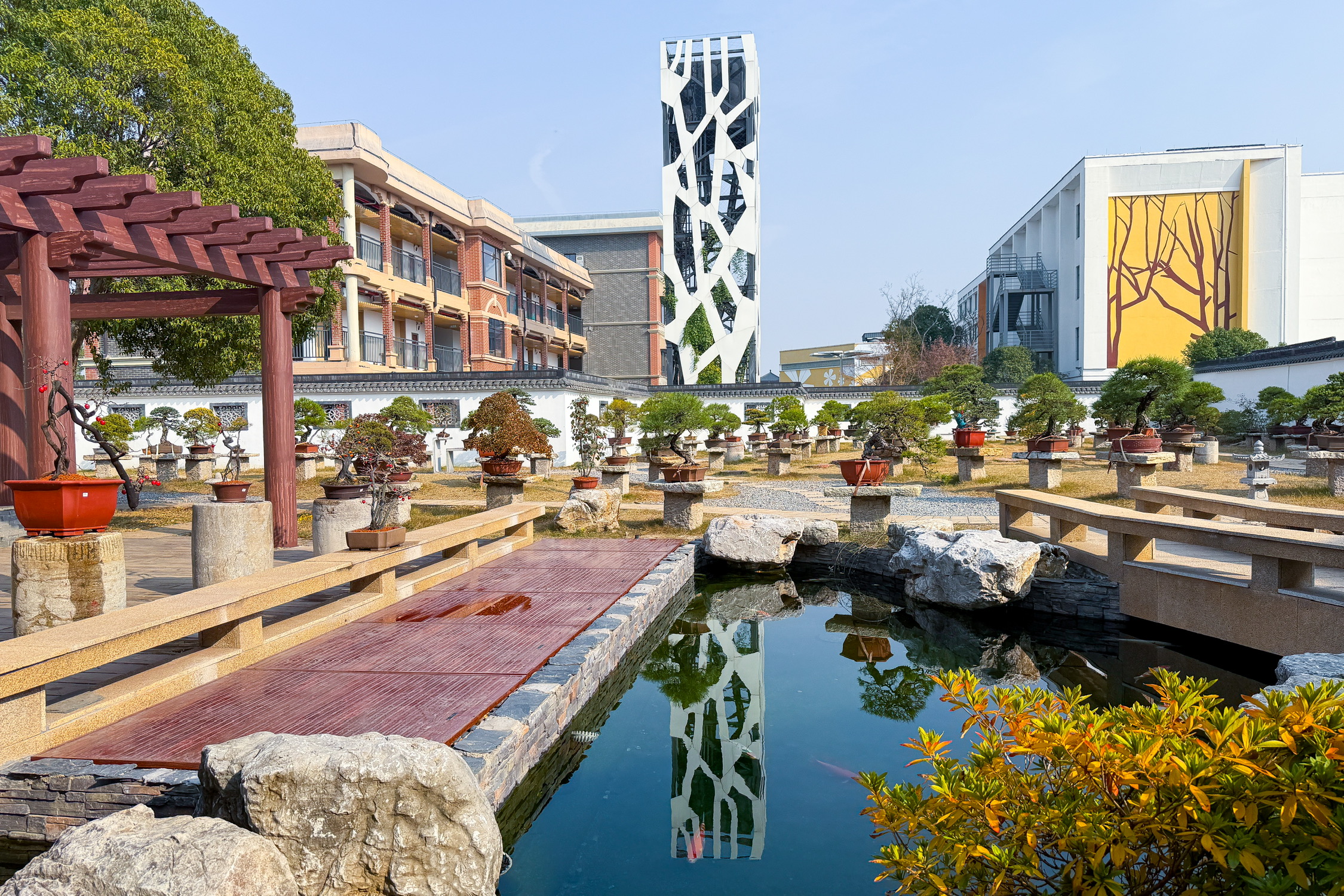 衬着未谢的绿意,整座园子的秋便有了层次:深的、浅的、暖的、柔的,裹着晴日的温煦,把“深秋”写成了一帧鲜活的画。