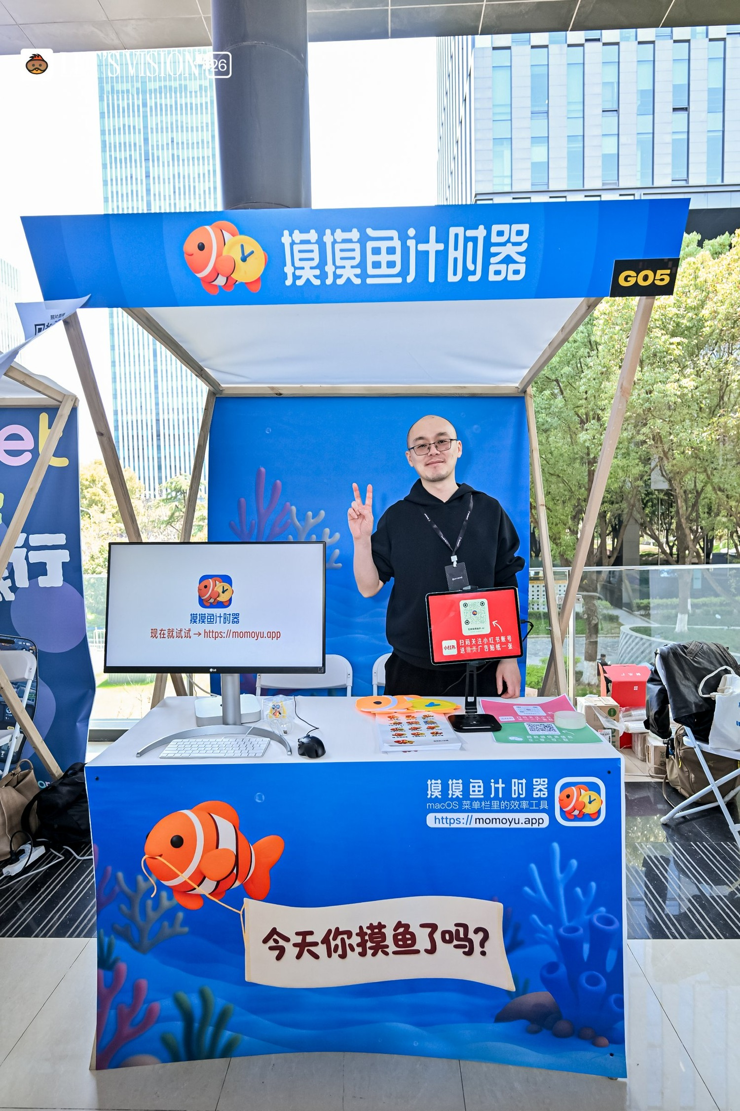 摸摸鱼计时器的 Let’s Vision 26 大会展台已搭完~ 明天漕河泾会议中心见~