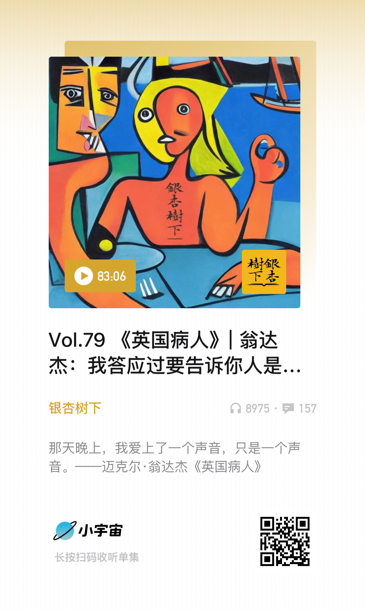 “我看书的时候觉得,石黑一雄和翁达杰如果认识,一定会惺惺相惜。”这句话我记得我在2022年上《银杏树下》录翁达杰《英国病人》那集播客里说过,只是彼时,我对这本书印象并不深刻。