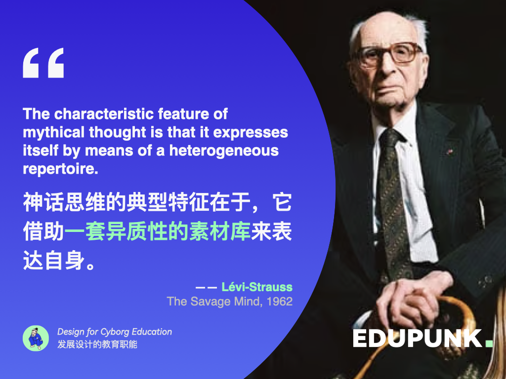 一本 The Savage Mind,列维斯特劳斯把 bricoleur 和 engineer 二元对立,一个四处拼凑采集,一个从原点建立系统。