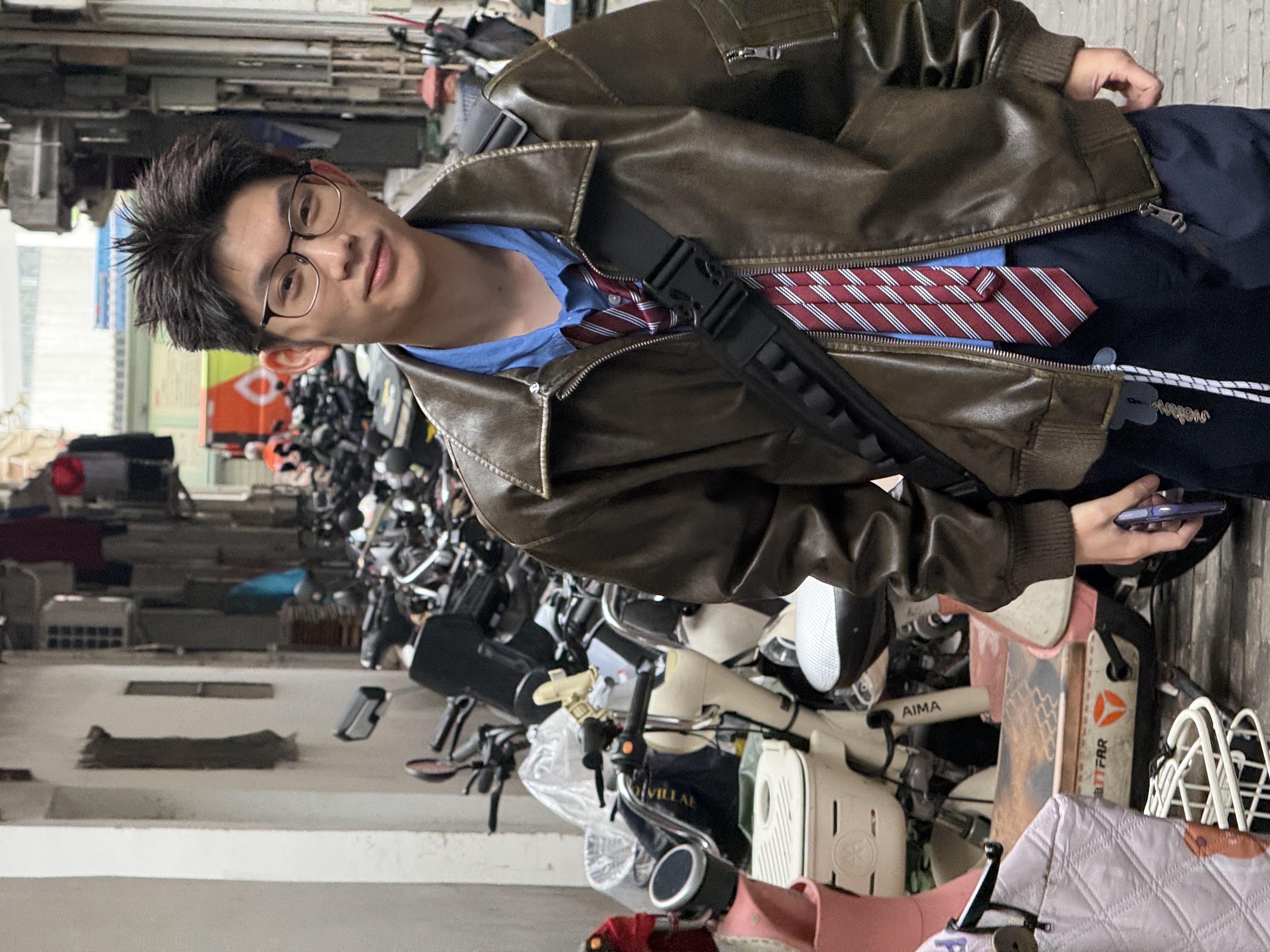 弟弟穿着他心心念的皮衣参加年会
