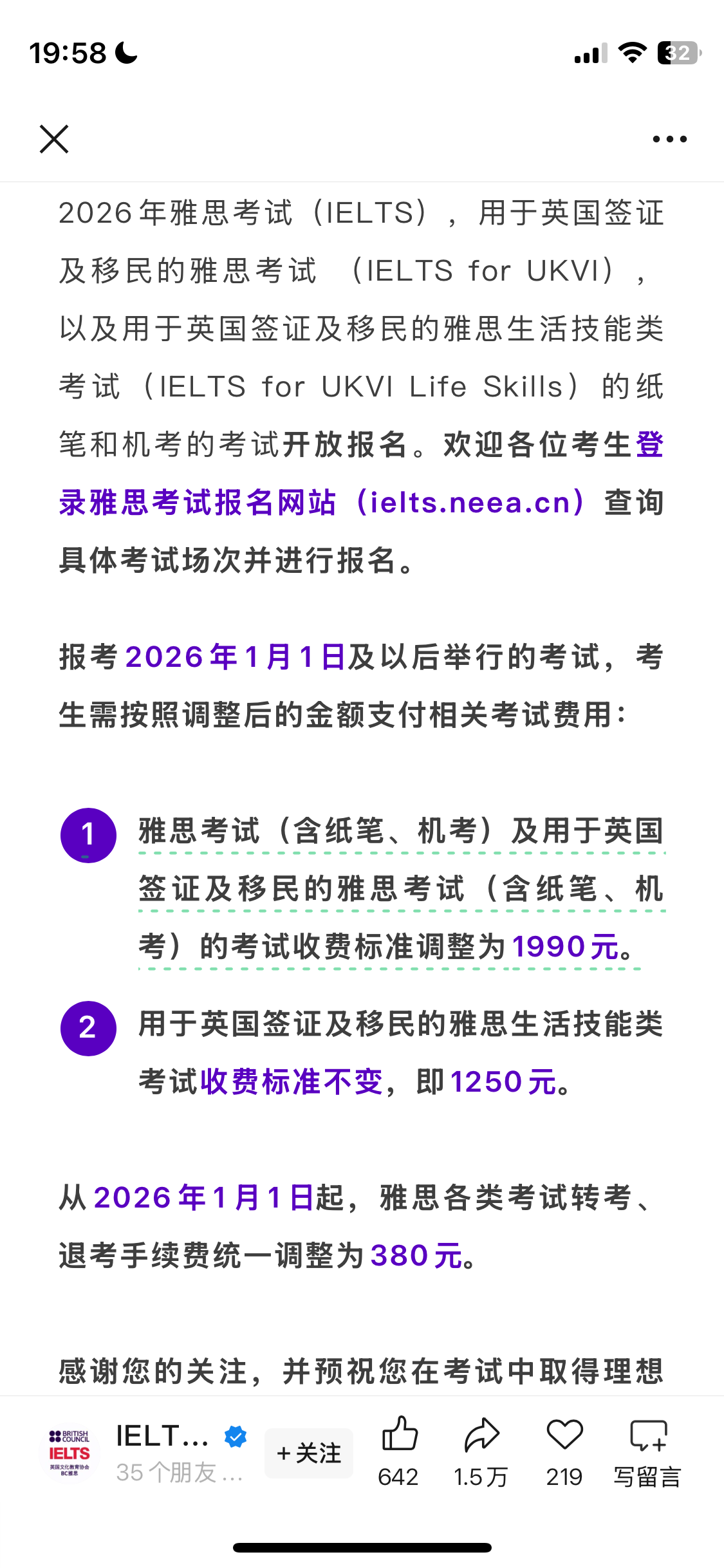 注册账号后一直拖延而没有报名雅思,结果今天官宣降价了👀
