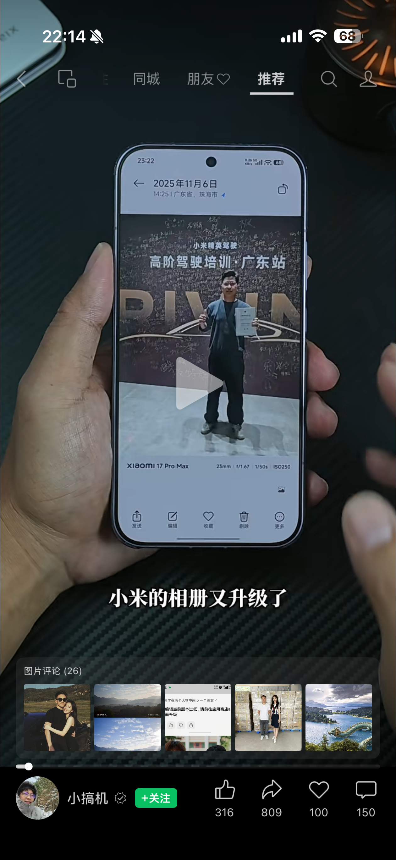 视频号视频界面 直接显示【图片评论】里的图片。