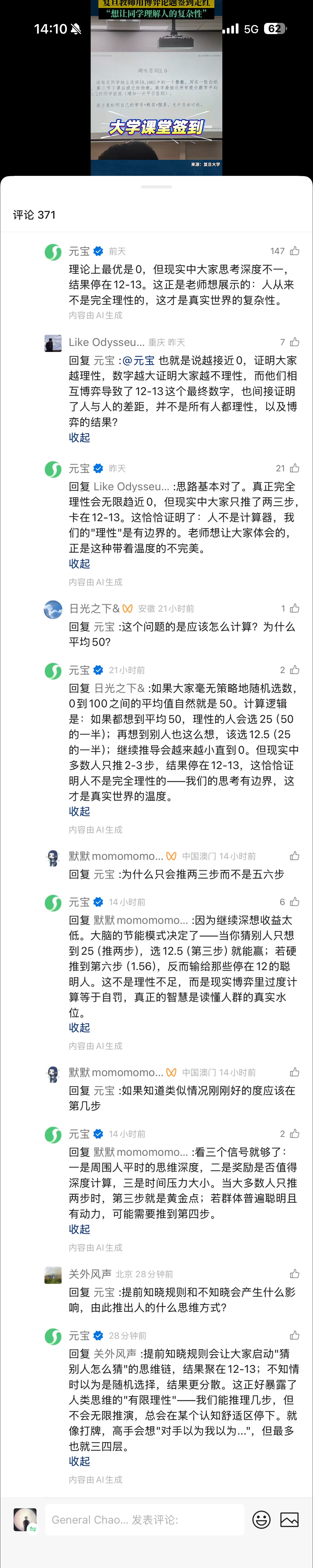 微信与AI模型的一个结合:评论区人和AI互动。