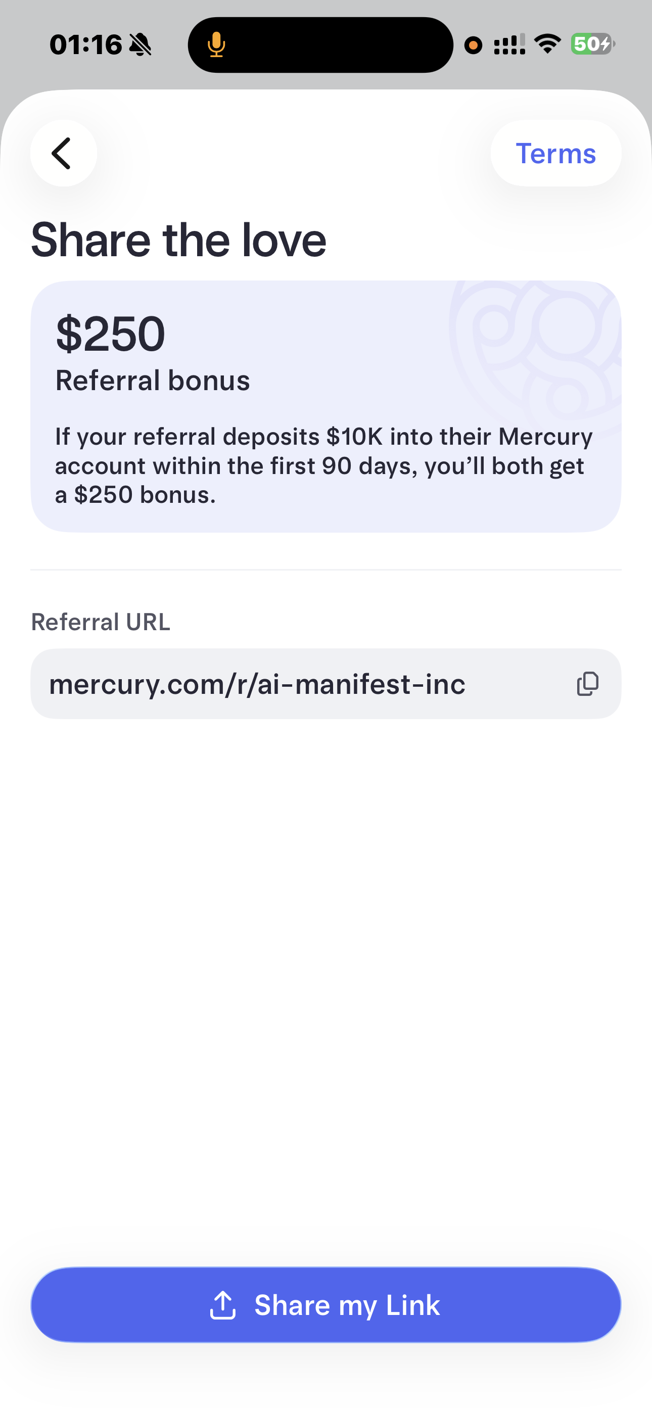 mercury.com条件是被邀请的用户90天内入账达到1w美金或更多。