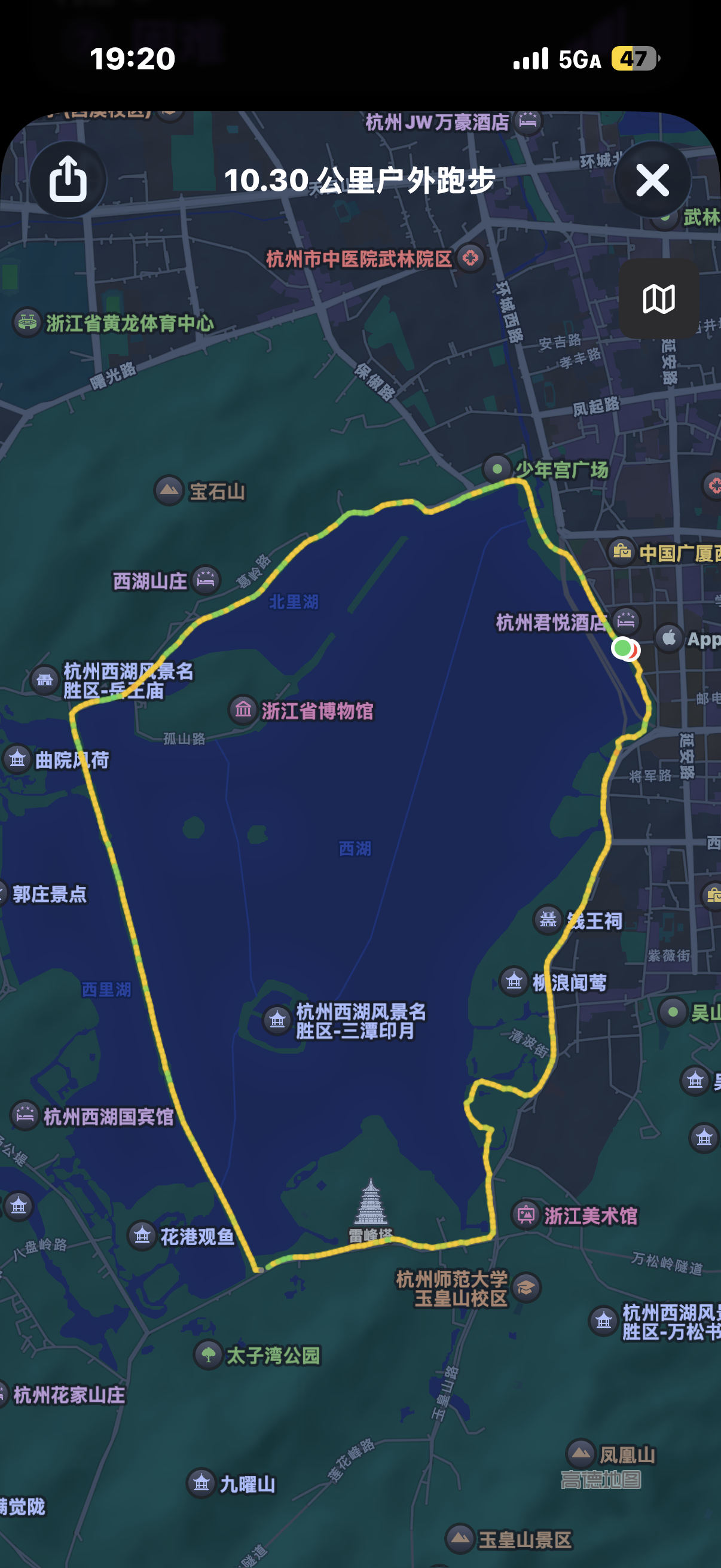 这次是西湖夜跑🏃🏻,忘记换鞋👟了❗️