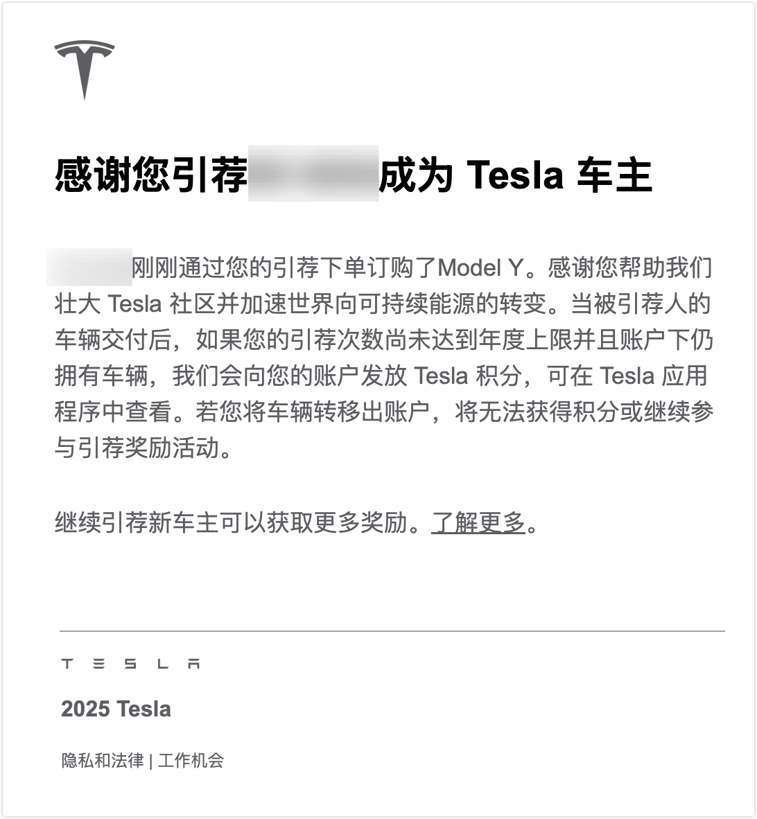 4 年了,俺第 1 次用上特斯拉引荐码,尴尬的是,我起初推荐的是 YL ... 😂