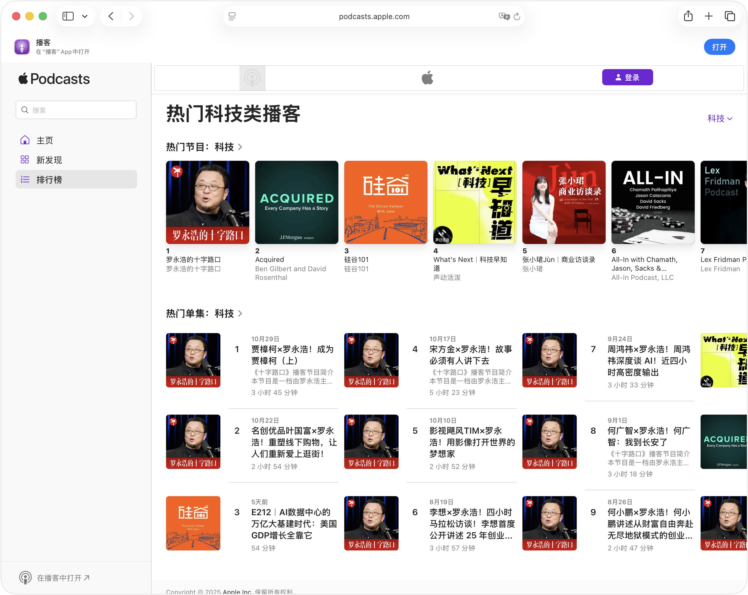 Podcasts 也更新了网页版,看了一眼科技类榜单,被罗永浩屠榜了!😱