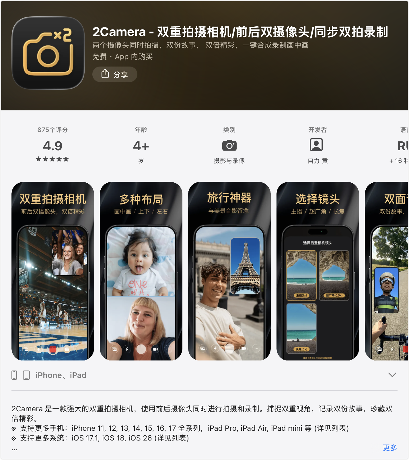 📷 [更新] 2Camera 双重拍摄相机 v1.1.3 发布啦!