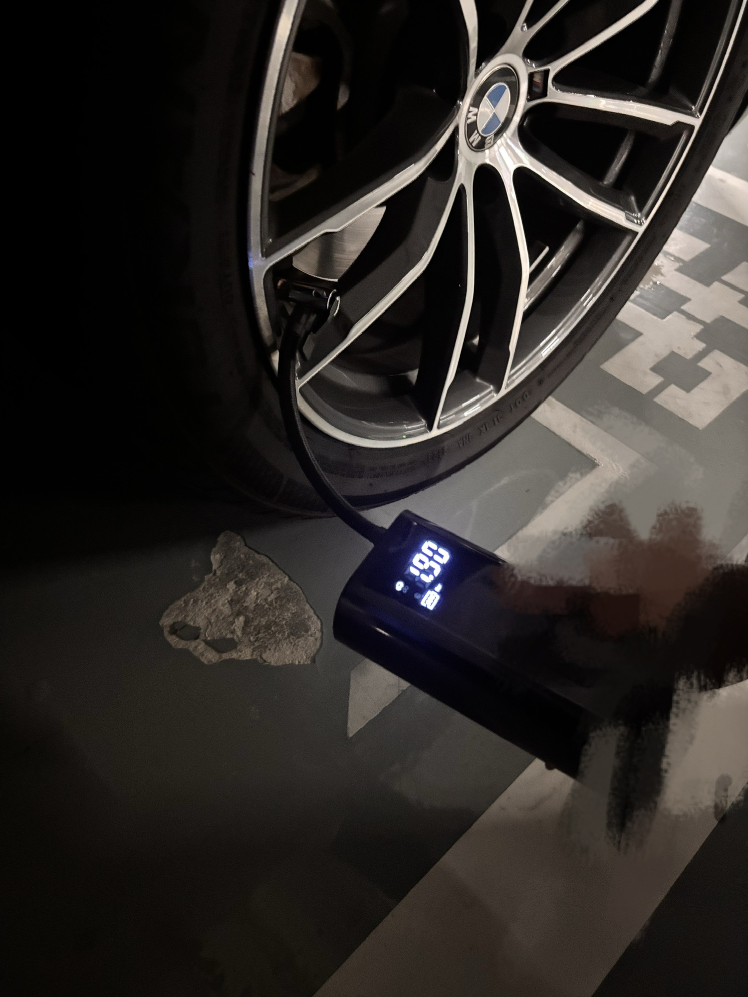 胎压直接全部报警,就连我的爱玛电动车后轮也瘪了一点,Shit!