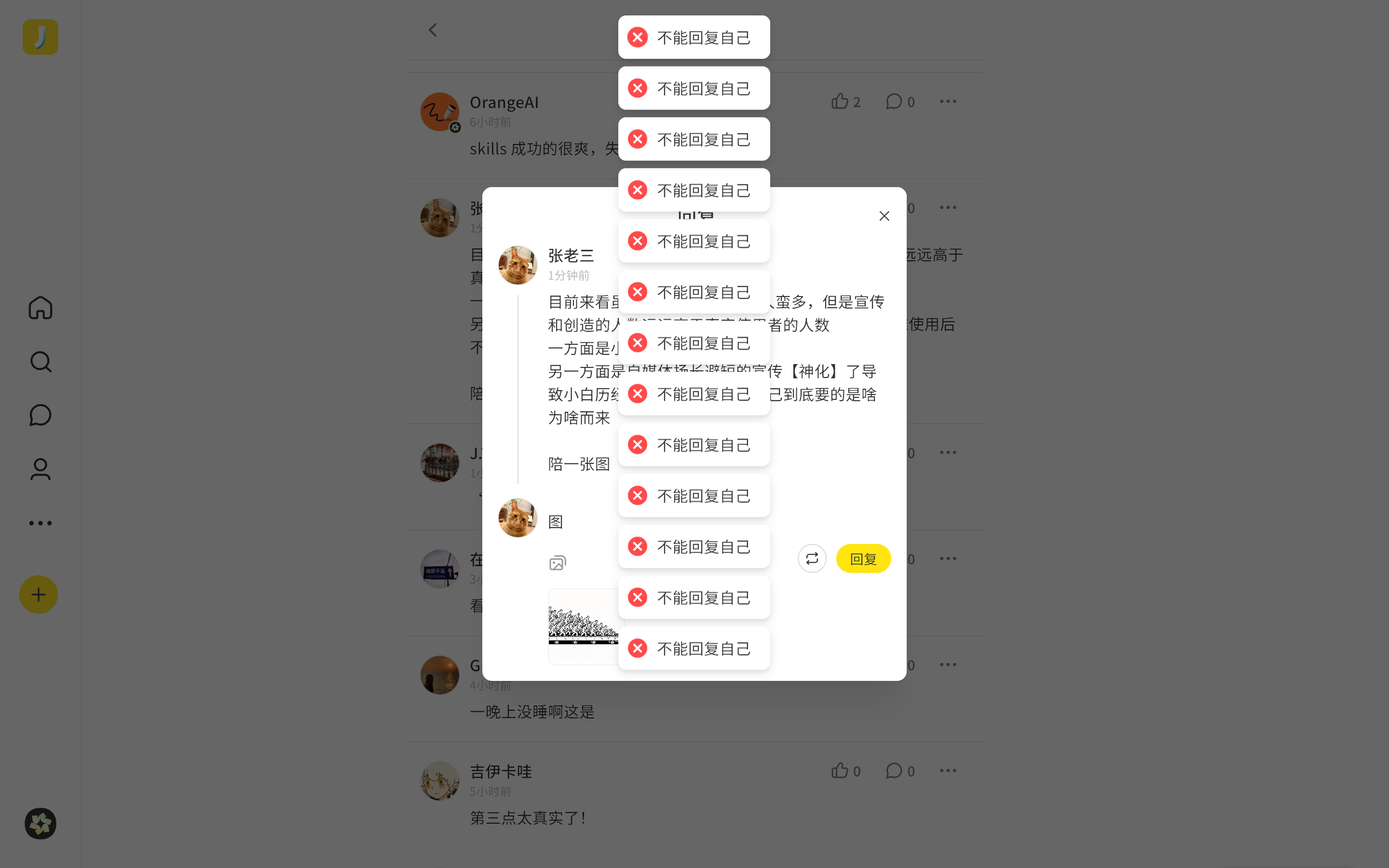即刻不能回复自己的回复实在是令人费解!