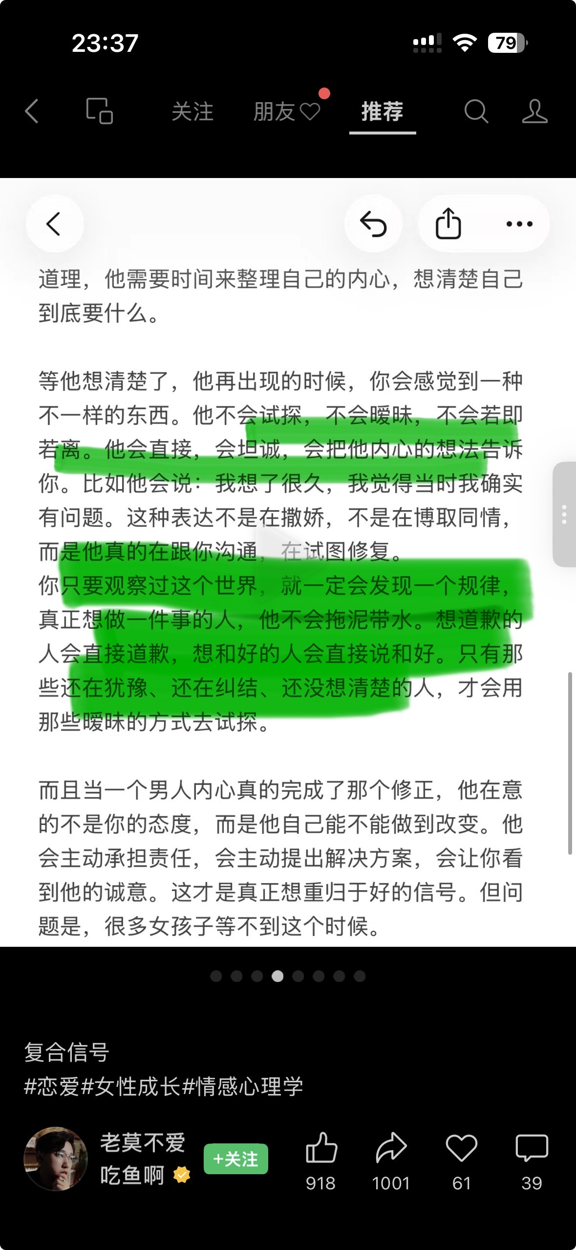 还有,一定要记住:那种颜值高、吸引力拉满的男人,通常不会为女生付出多少。因为他平时不用付出就能得到很多女人的喜欢。说白了,早就被惯坏了。