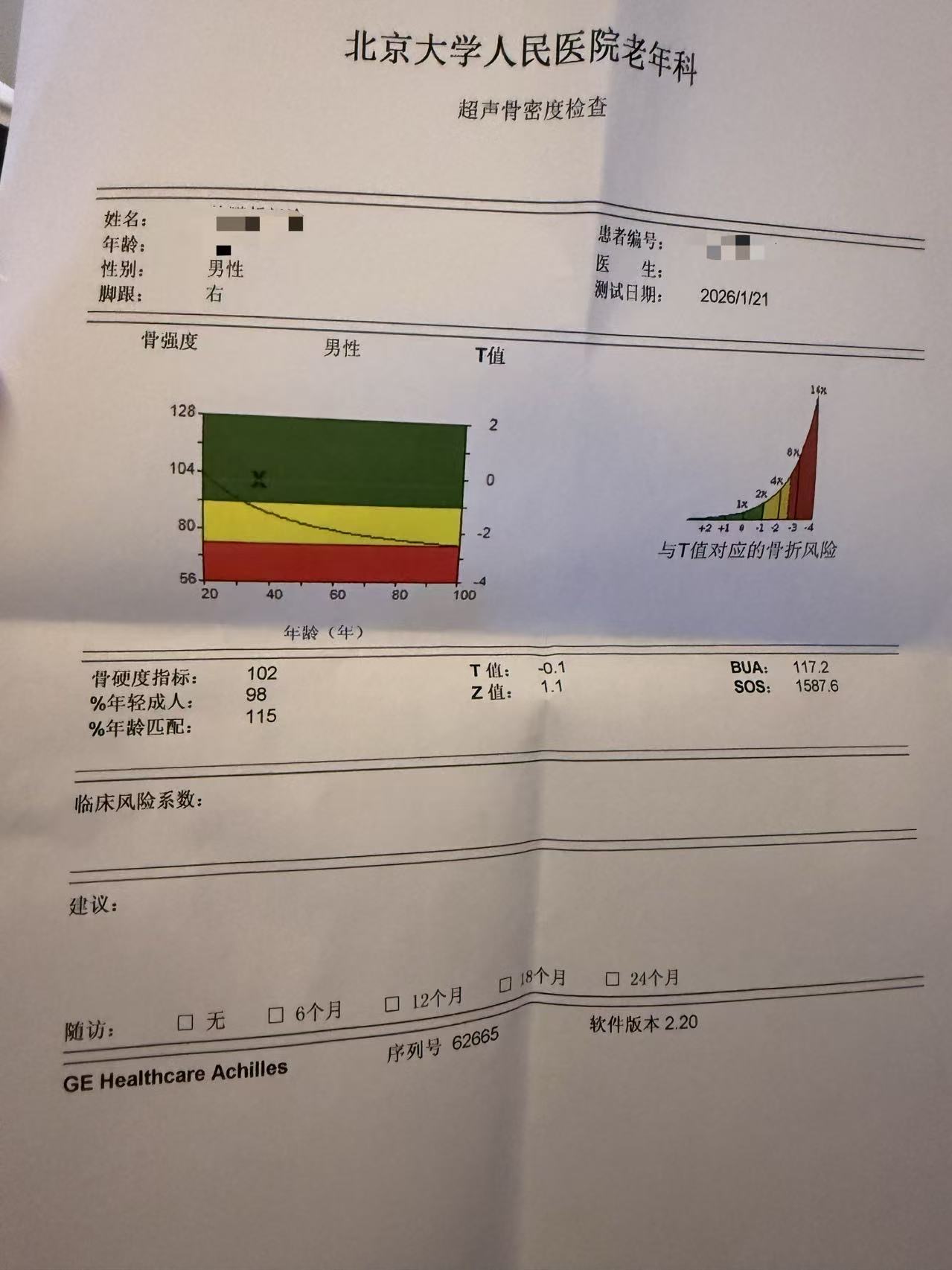 骨密度检测方式很新颖,最无语的是刚让AI看结果,才发现,是老年科!