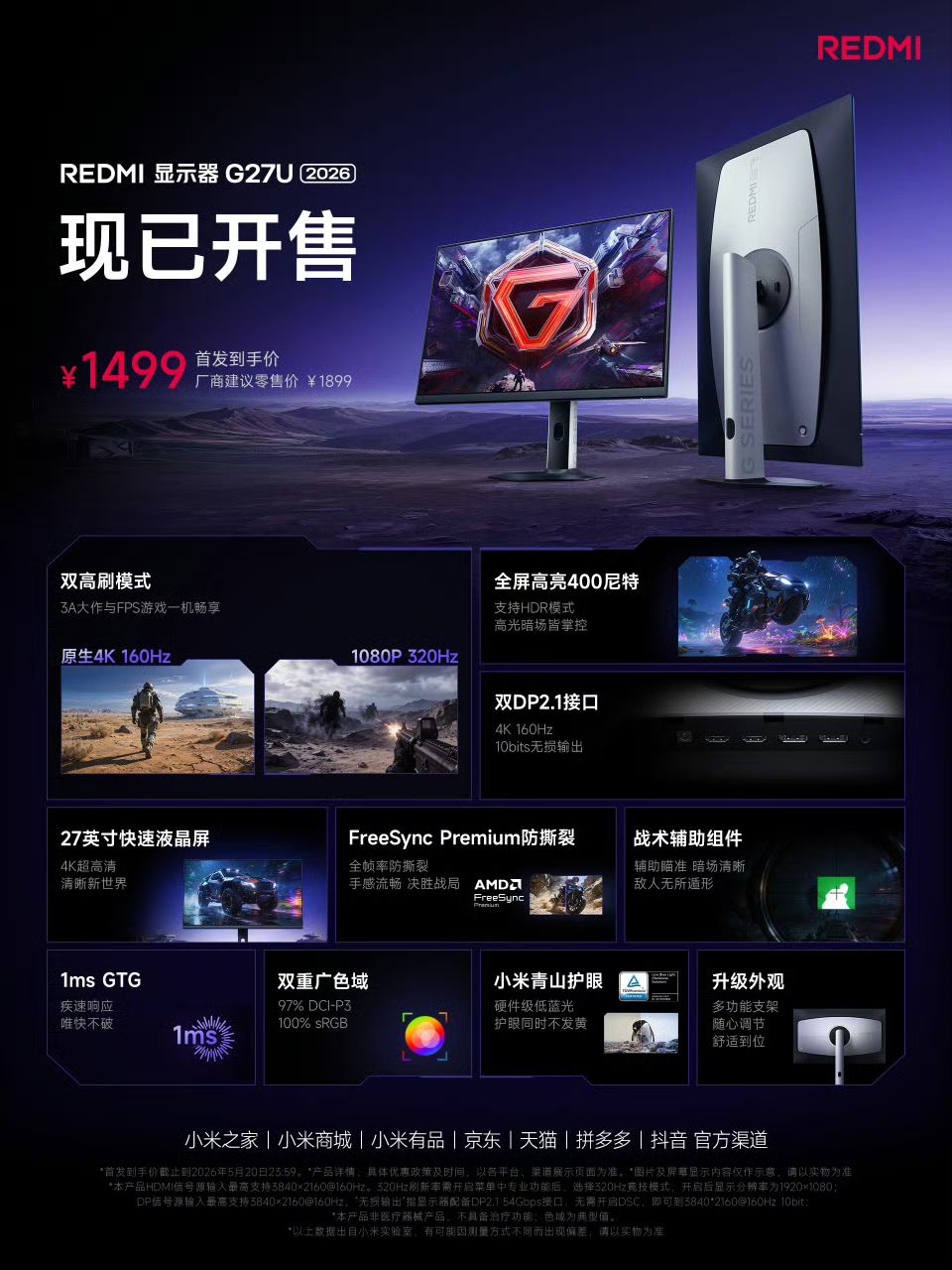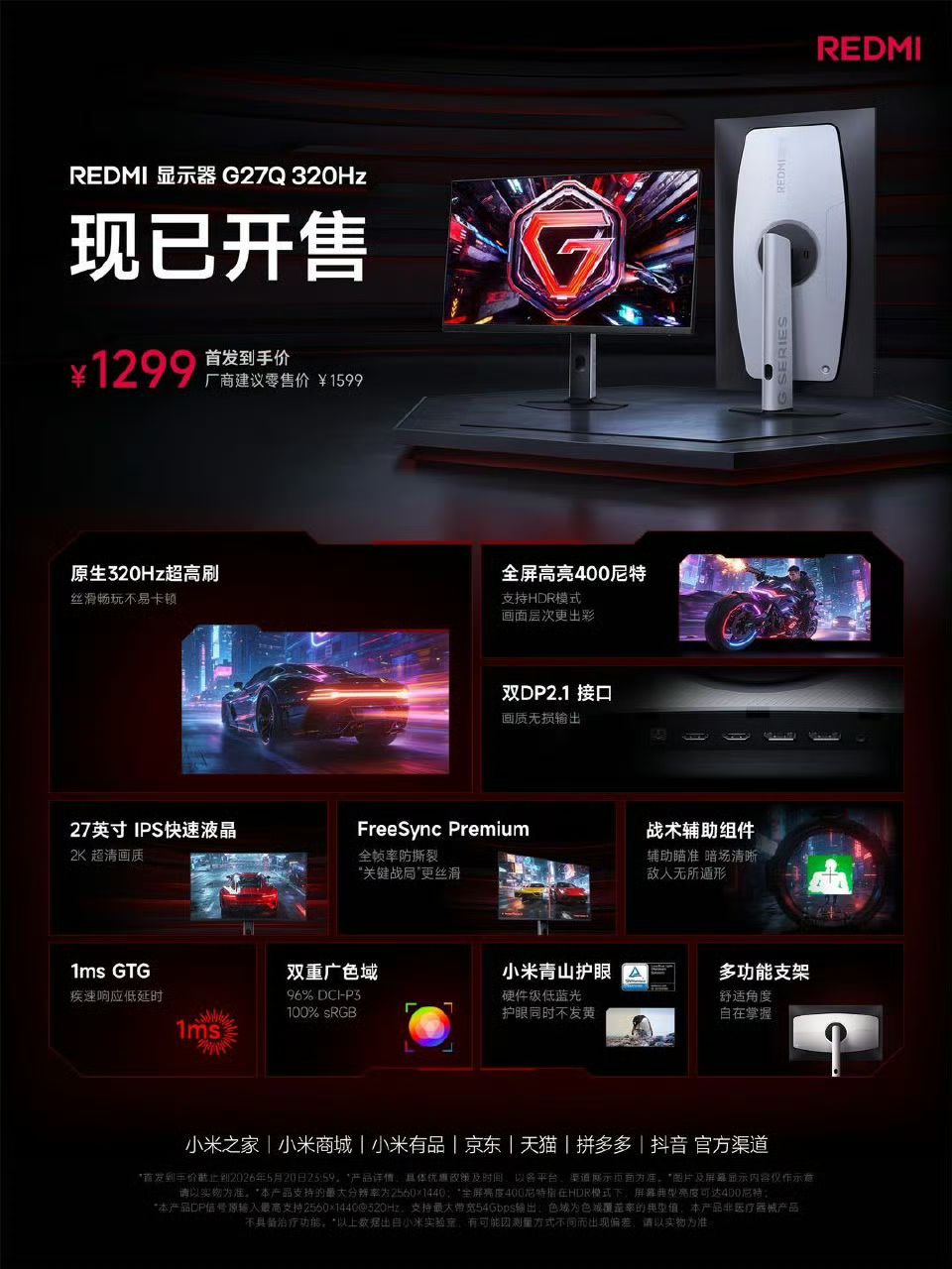 REDMI显示器G27Q 320Hz