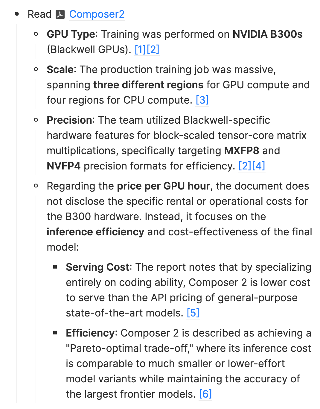 2/ NVIDIA 护城河依然极高。Composer 2 是在 NVIDIA B300(Blackwell)上训的,用了 MXFP8 和 NVFP4 这种 block-scaled tensor-core 精度格式。这在一两年前完全无法想象——你不仅要有卡,还得有能力把新硬件特性吃透。训练横跨三个 region 的 GPU 集群 + 四个 region 的 CPU 集群。