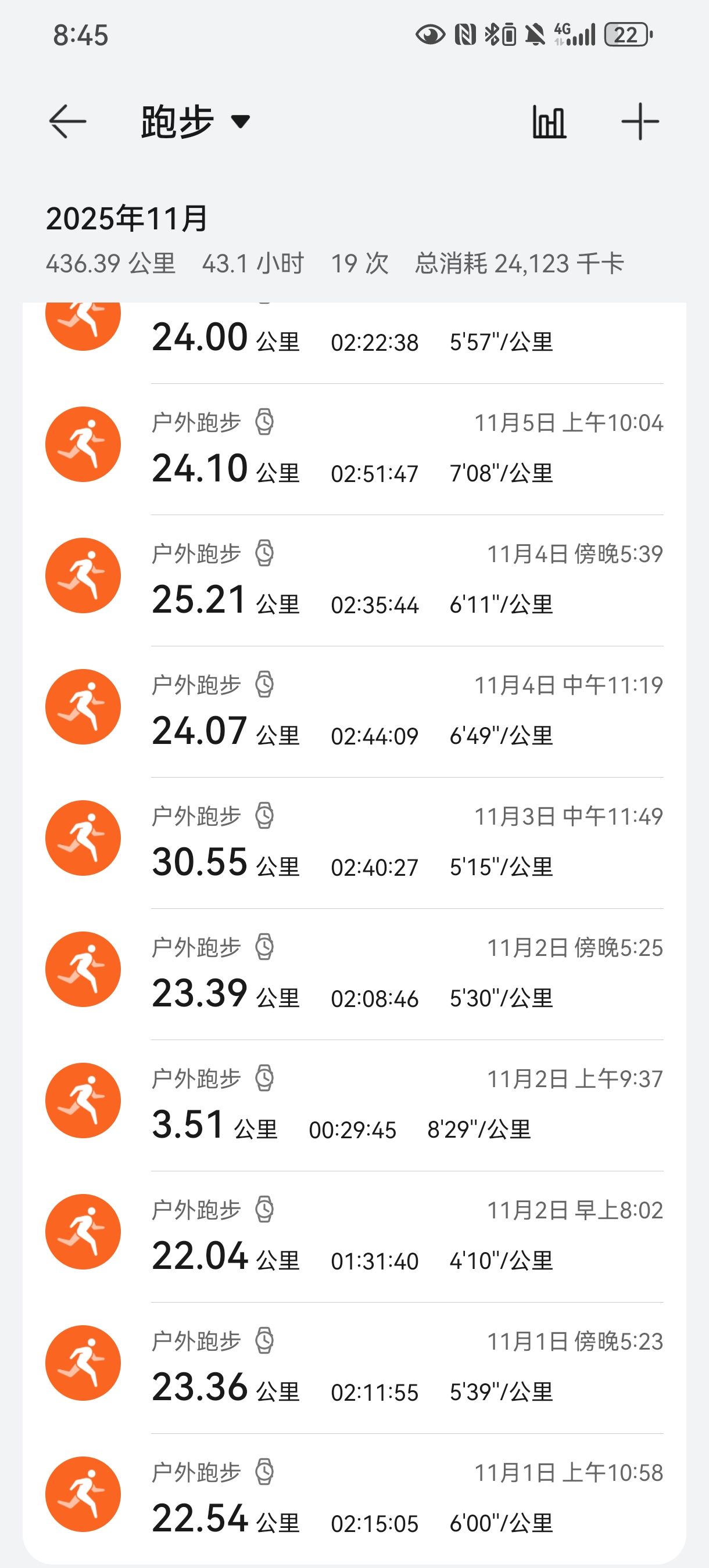 11 月截至目前跑量,平均每天一个全马。