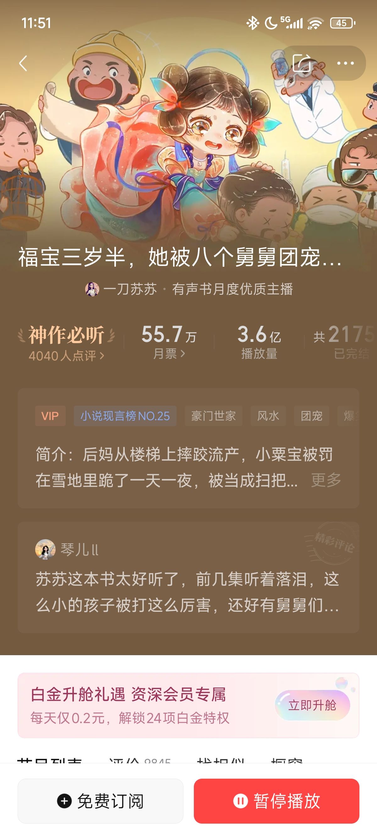 每播放一集都有一句开头语“欢迎收听福宝三岁半,她被……”