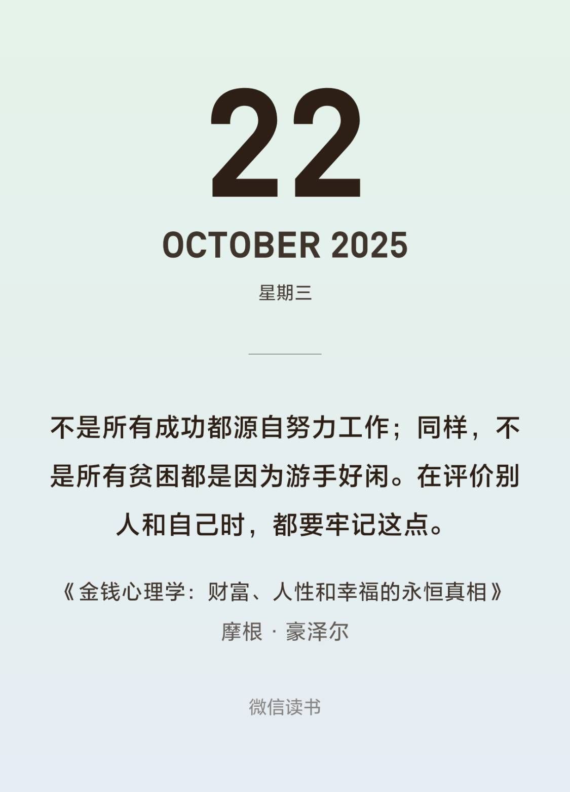 不是所有成功都源自努力工作;同样,不是所有贫困都是因为游手好闲。在评价别人和自己时,都要牢记这点。