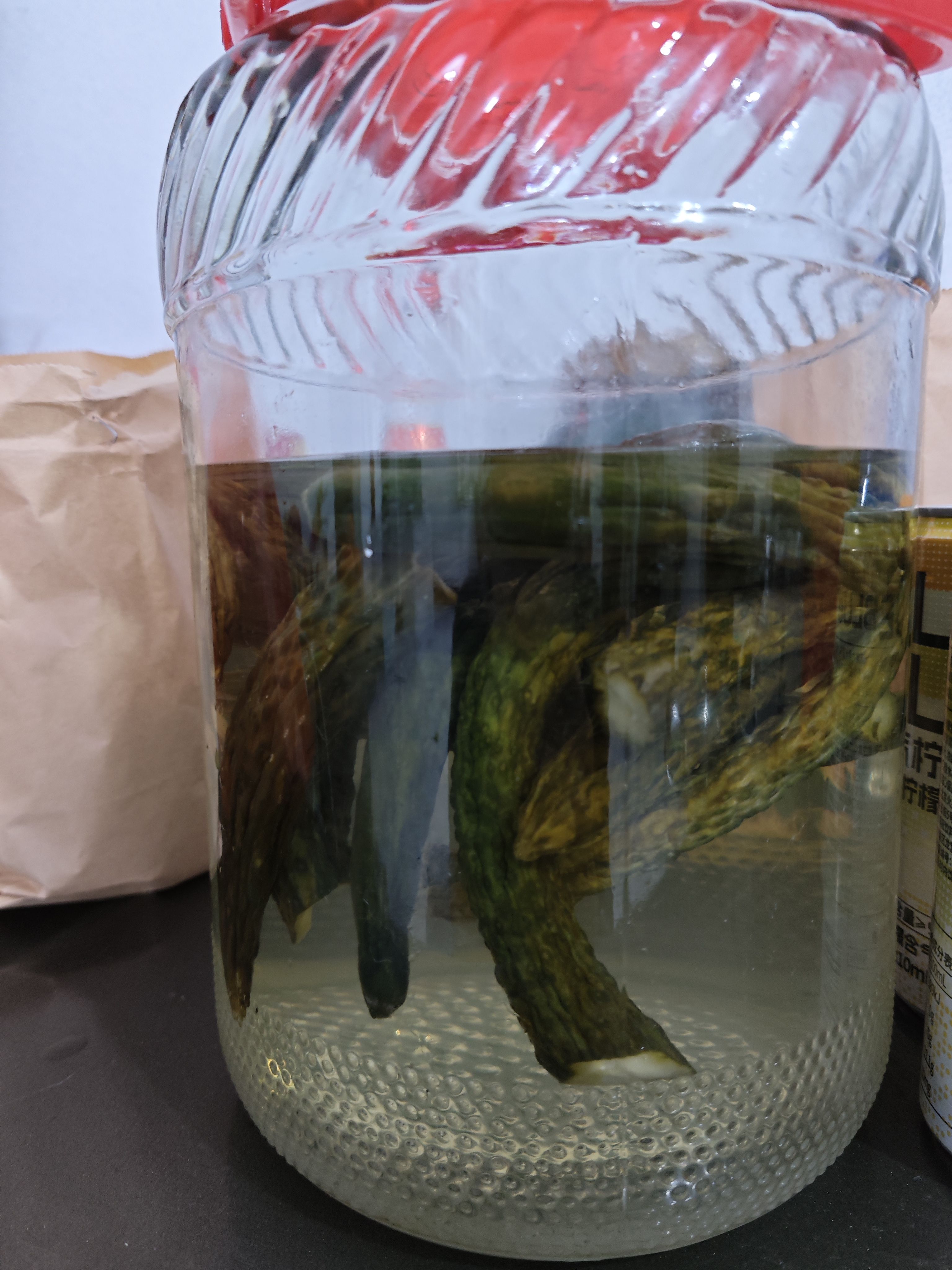 以及我们相信……机粽饼这么热气的碳水炸弹,是可以吃别的东西“解”掉火气,于是就有了白米醋➕糖渍的腌黄瓜,这种黄瓜在外面是没人收的,又小又弯,但用在这里是恰到好处😁