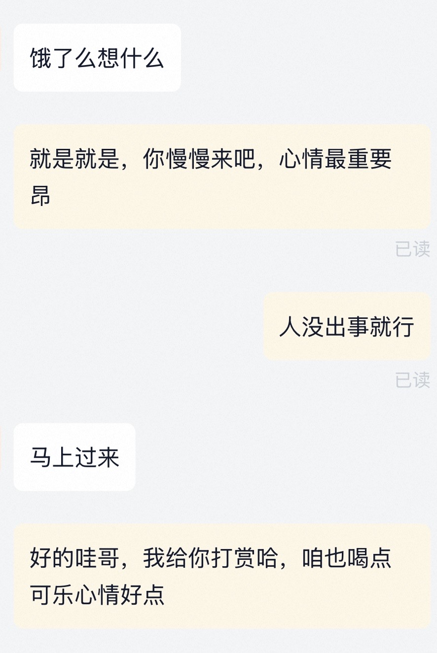 【成长】昨天给闪购小哥打赏了,应该是比较年轻的骑手,被饿了么乱派单搞的心情不好,打赏之后感觉他心情好了一些。