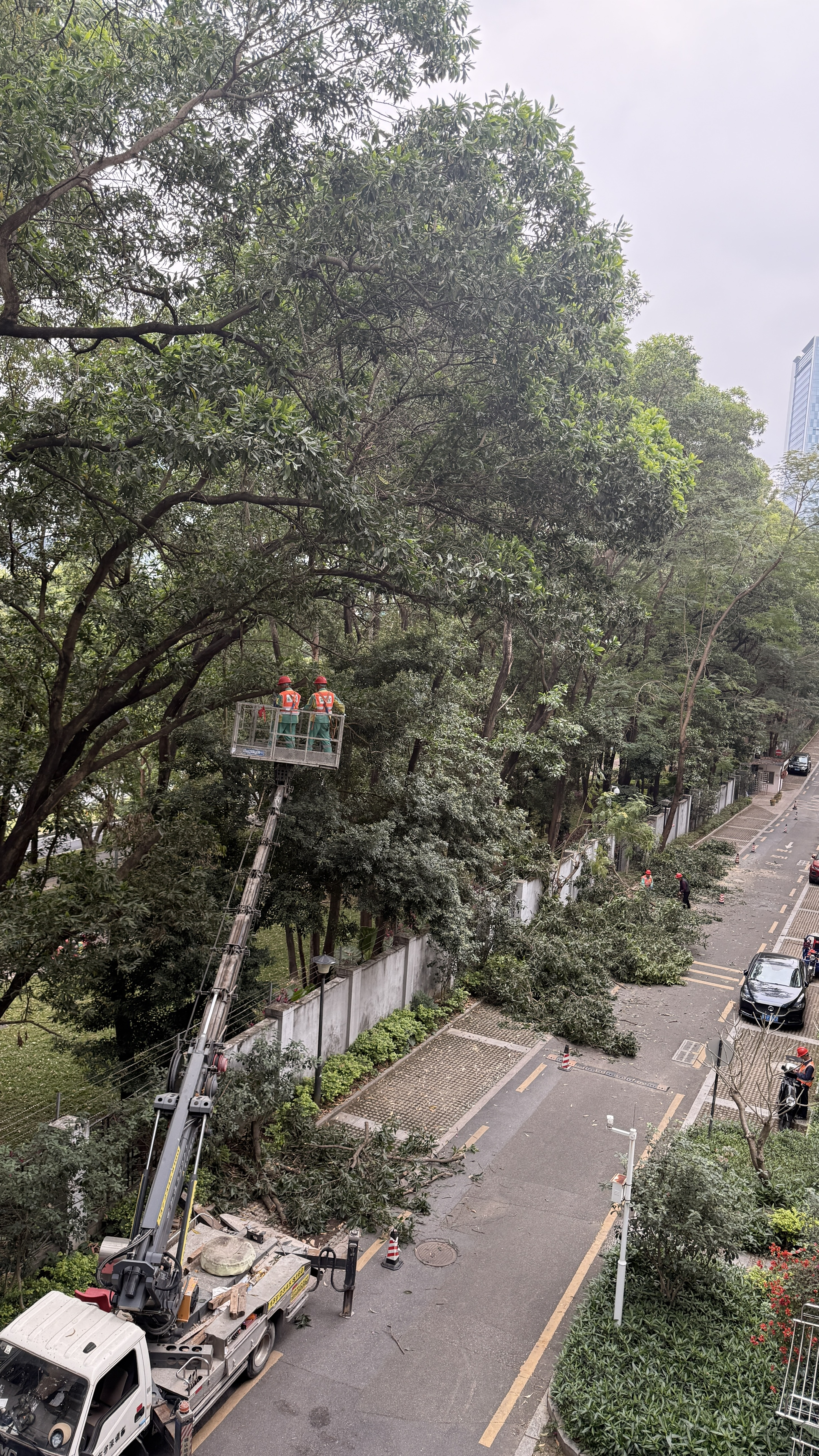 小区开始修剪树枝了,得轰隆隆一下午了。