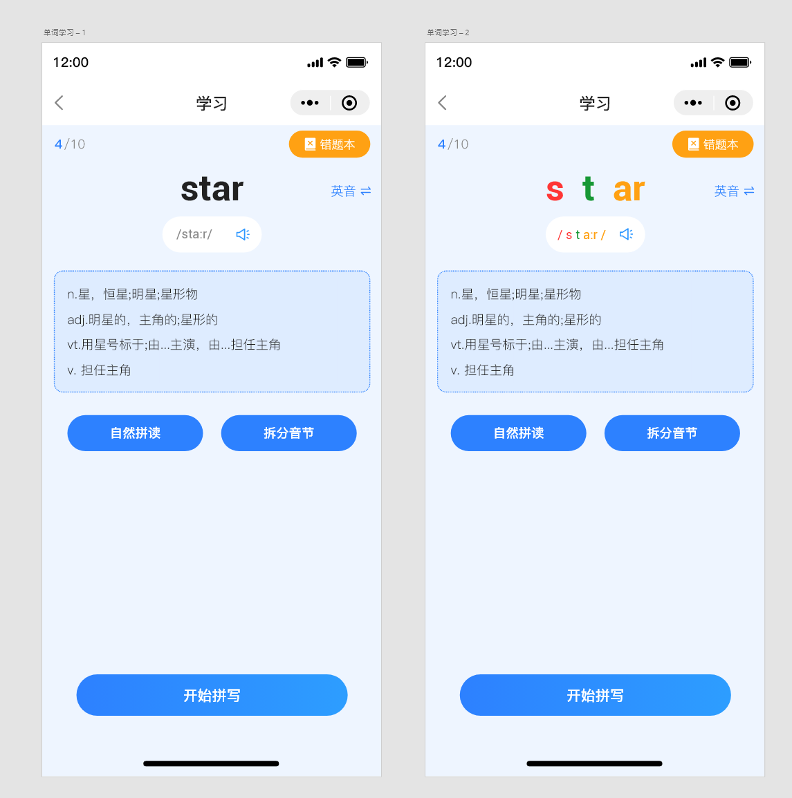 这是我的小程序翻翻单词主打自然拼读而不是市面上常见的背单词软件如百词斩、多邻国等四选一的方式记忆单词的原因