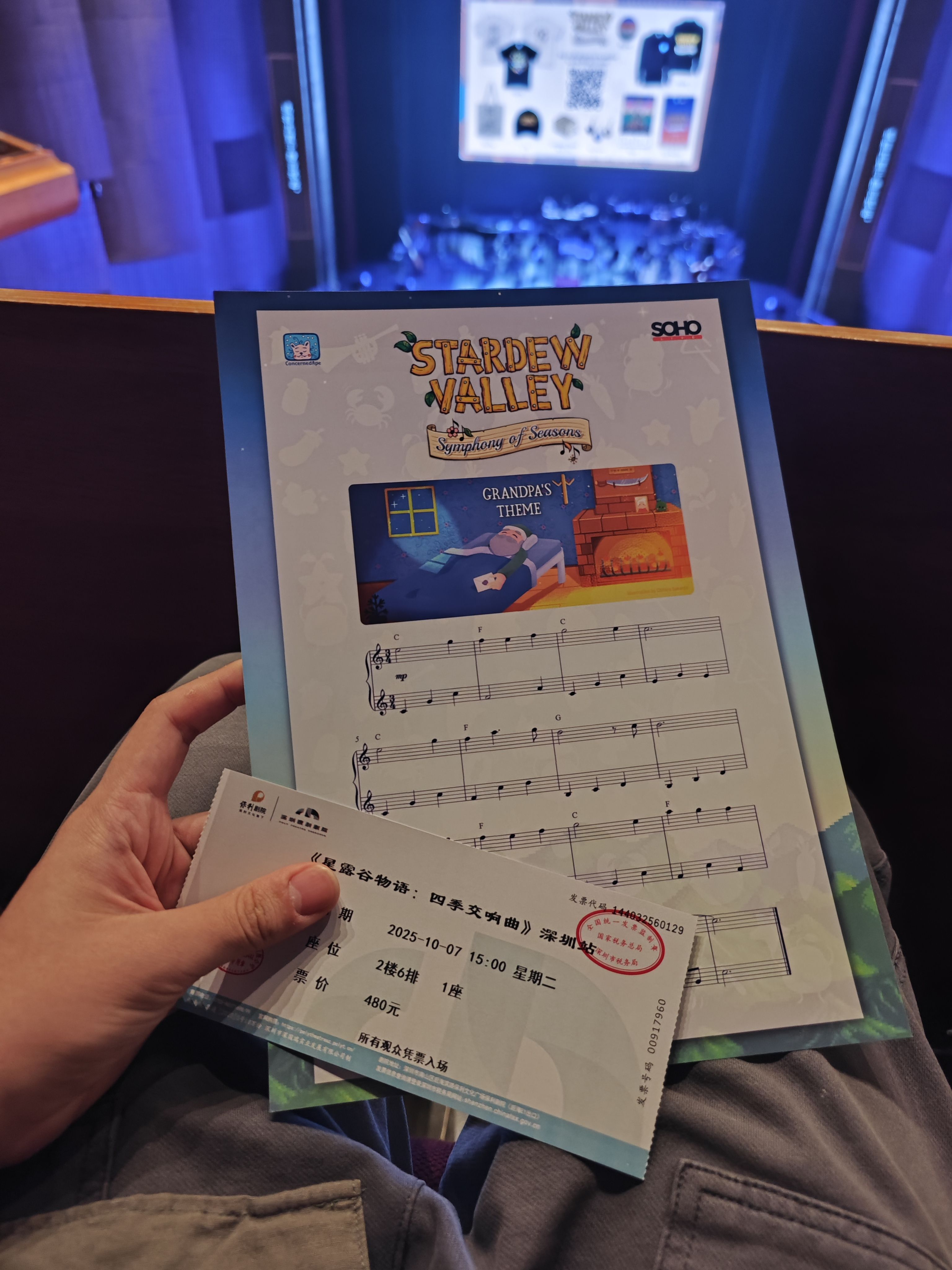 跟着乐团的演奏经历了新一轮的星露谷的春夏秋冬,从保利剧院出来时整个人都还沉浸在其中。在剧场外有很多cos艾米丽、海莉、潘妮等等的人,一直想上前请求合照,但实在没有提起勇气;也有看到很多在交换无料的老乡,可惜我自己什么也没有准备。但总感觉大家都在以自己的方式爱着这个地方,真的很令人感动。