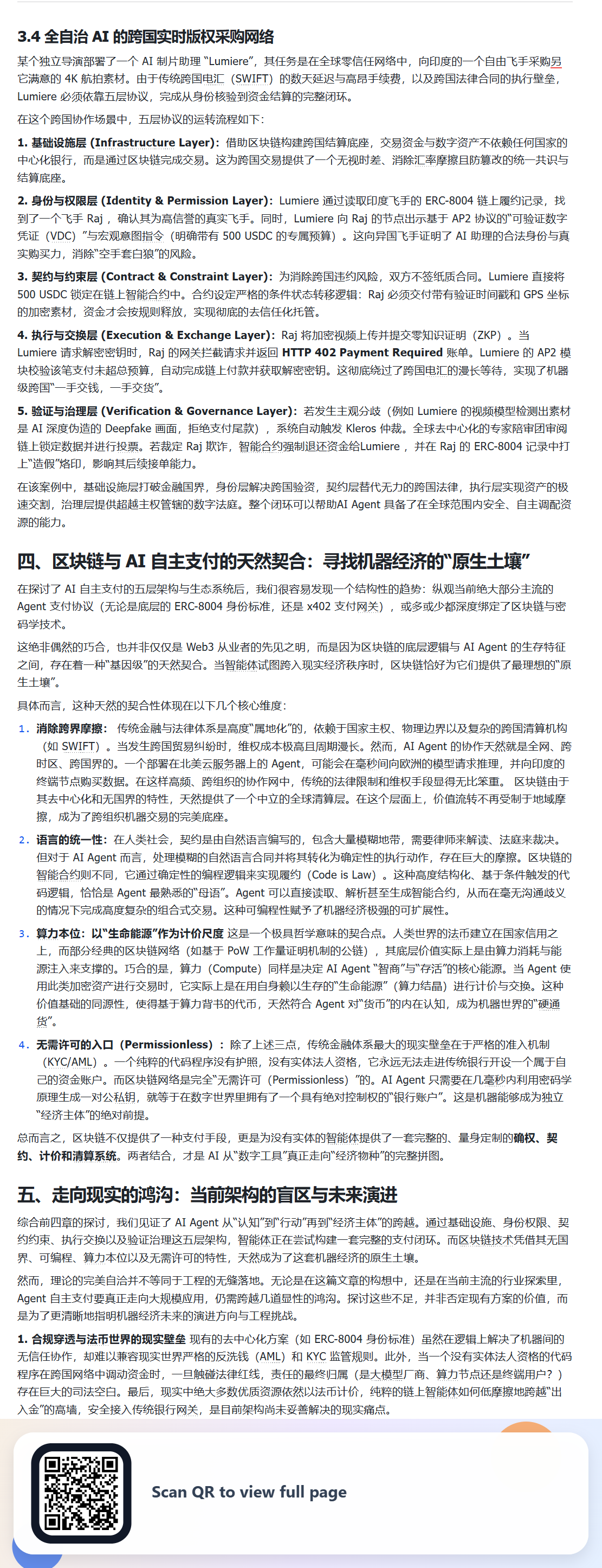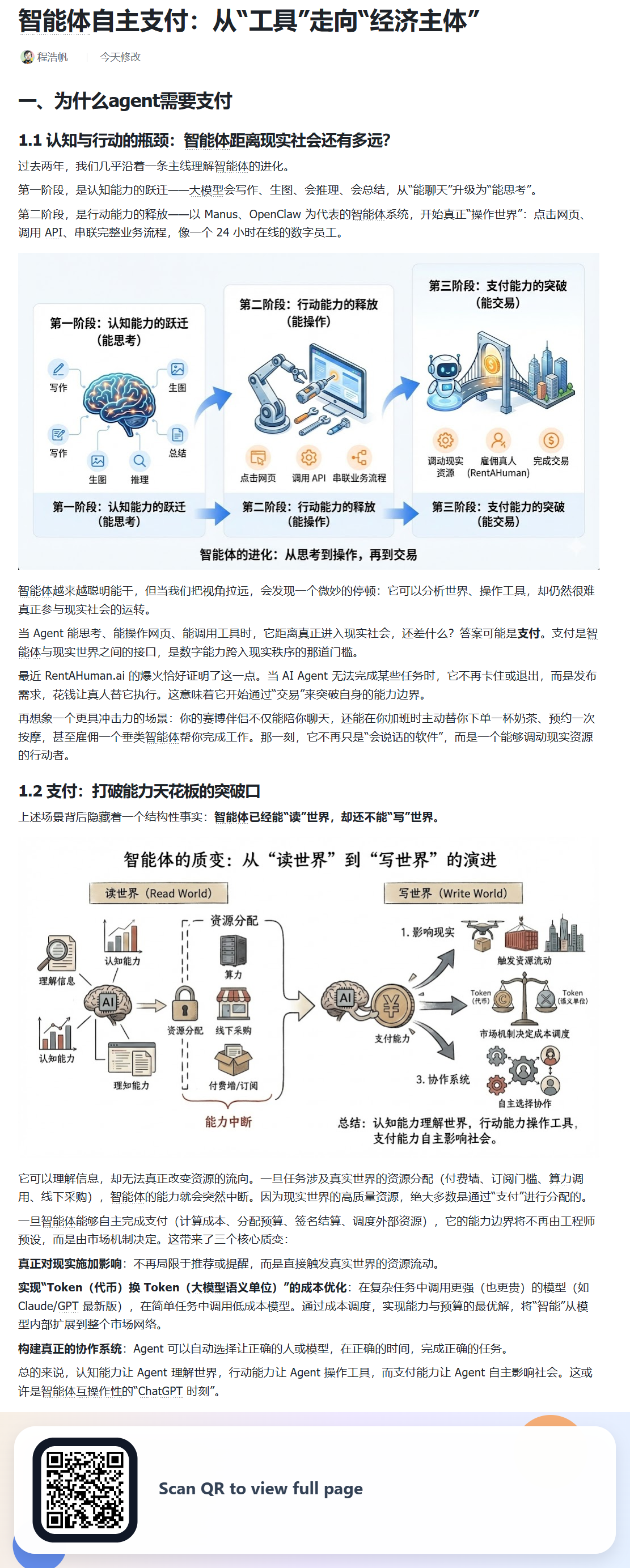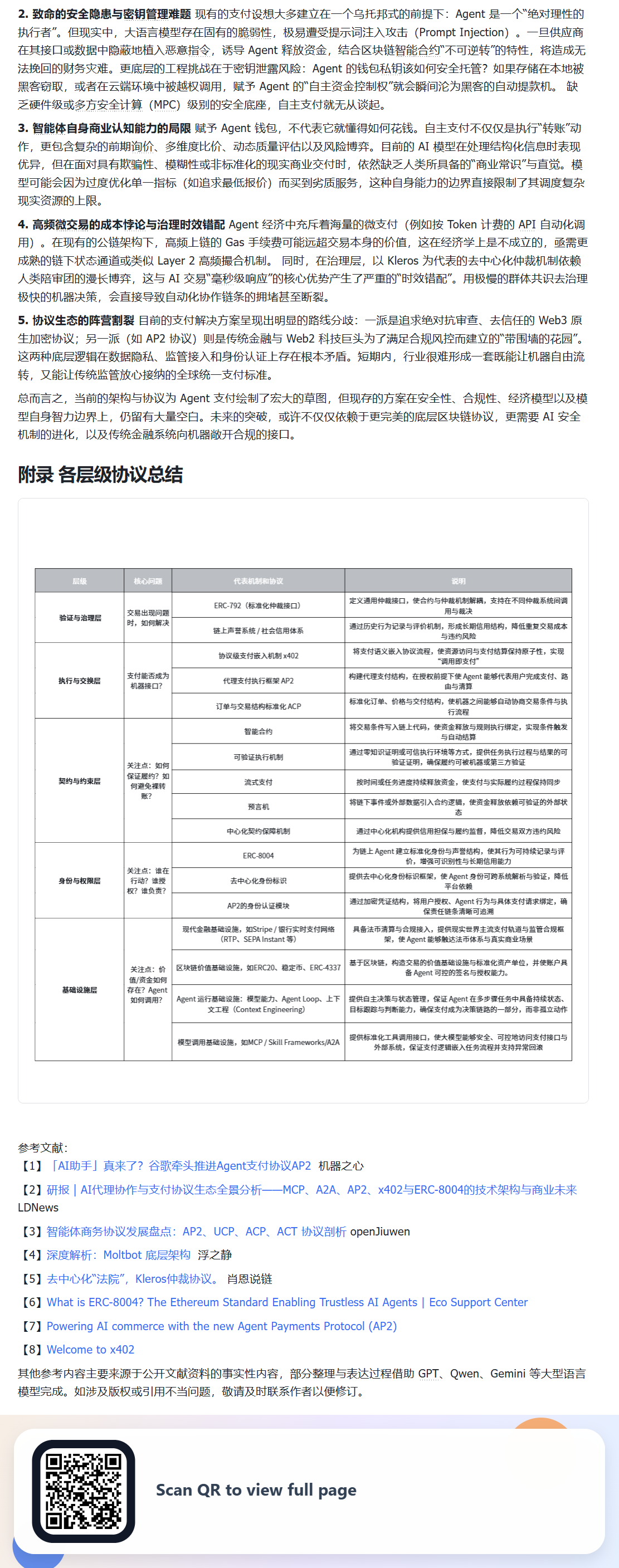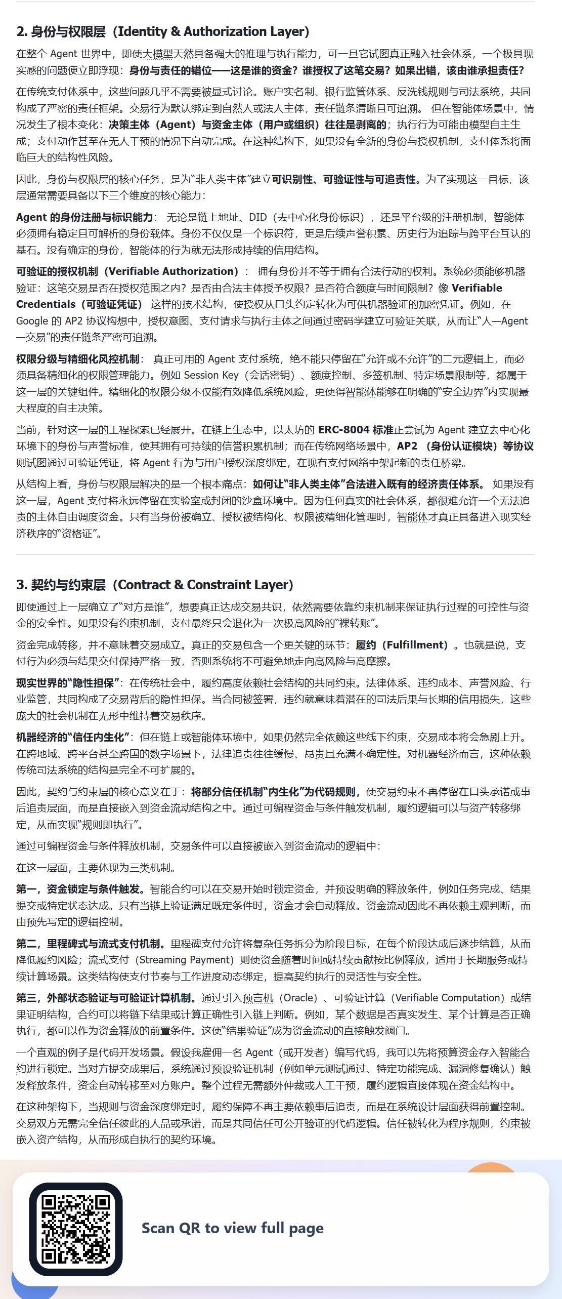 之前提到的 ,Agent 自主支付相关的文章,之前读起来不太方便,所以最近用 vibe coding 写了个谷歌插件用于截图分享,现在重新把原文放上来供大家讨论,还是诚邀大家一起完善