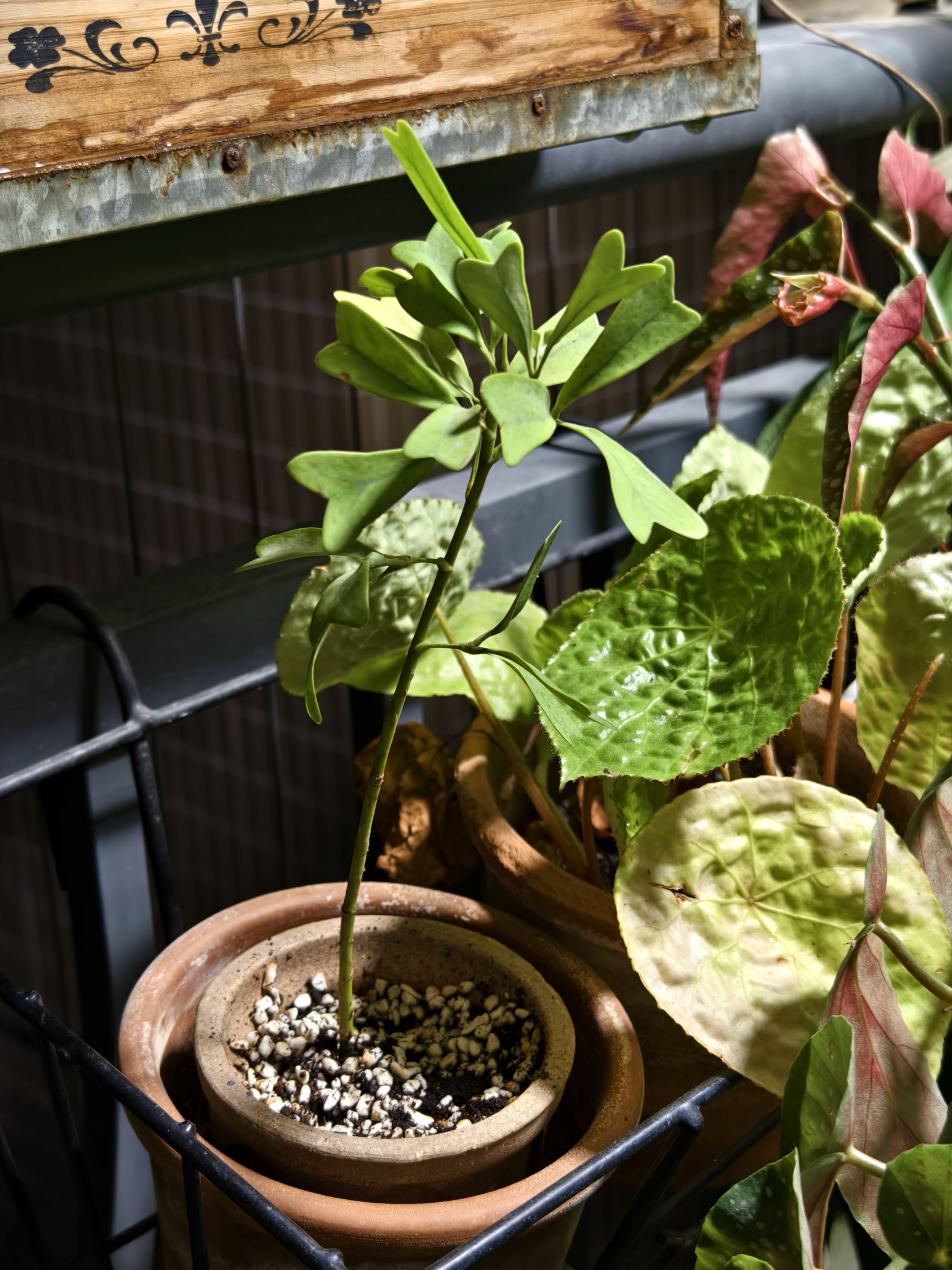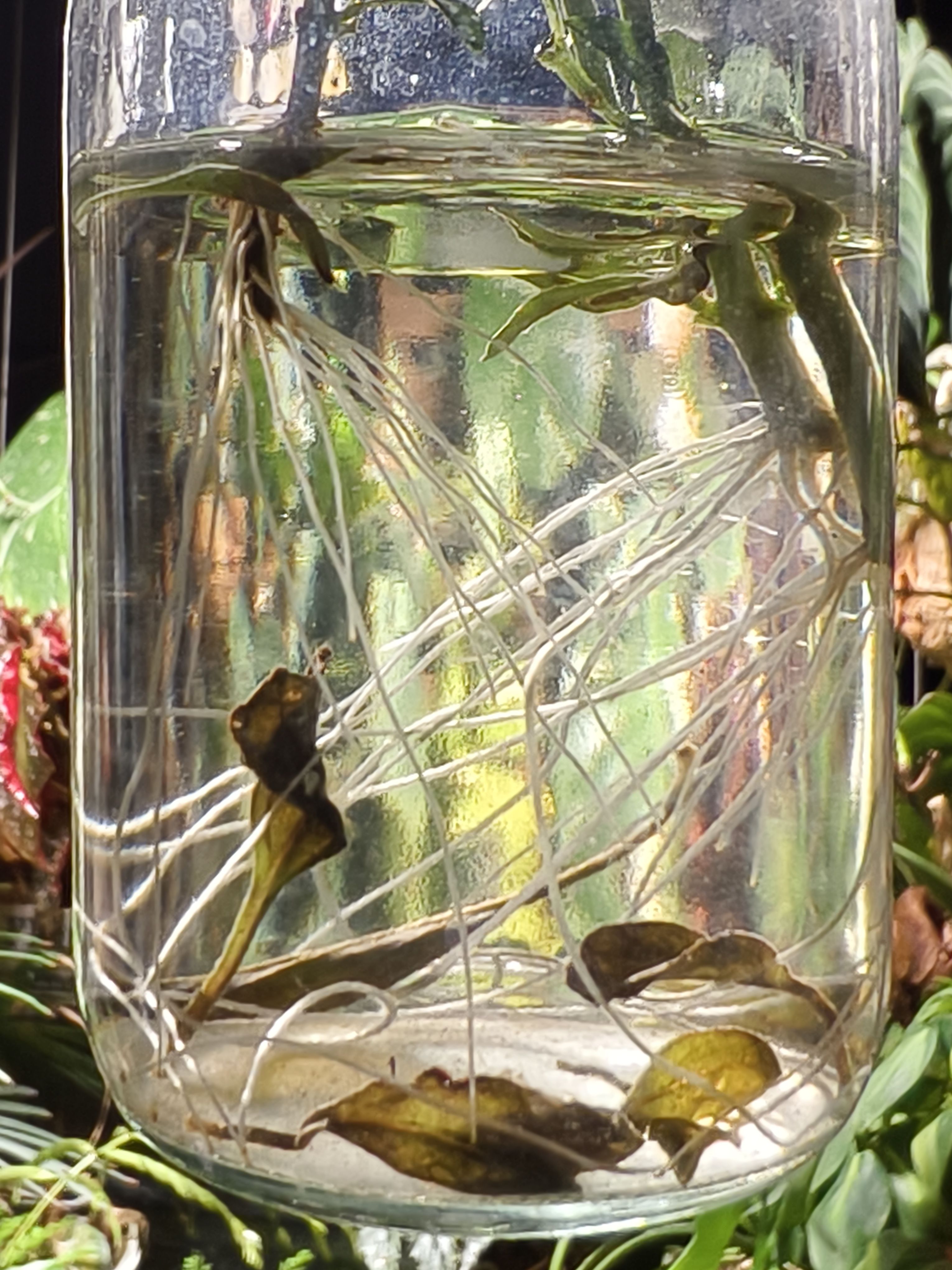 1️⃣二叉鹅掌柴切枝水培长根虽慢,但是长根后转土培定植很快就适应了。