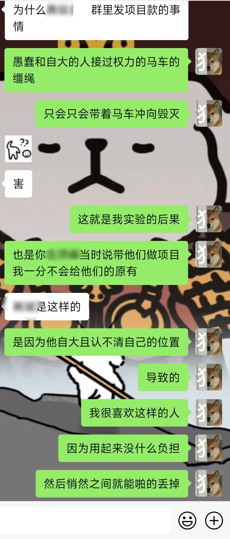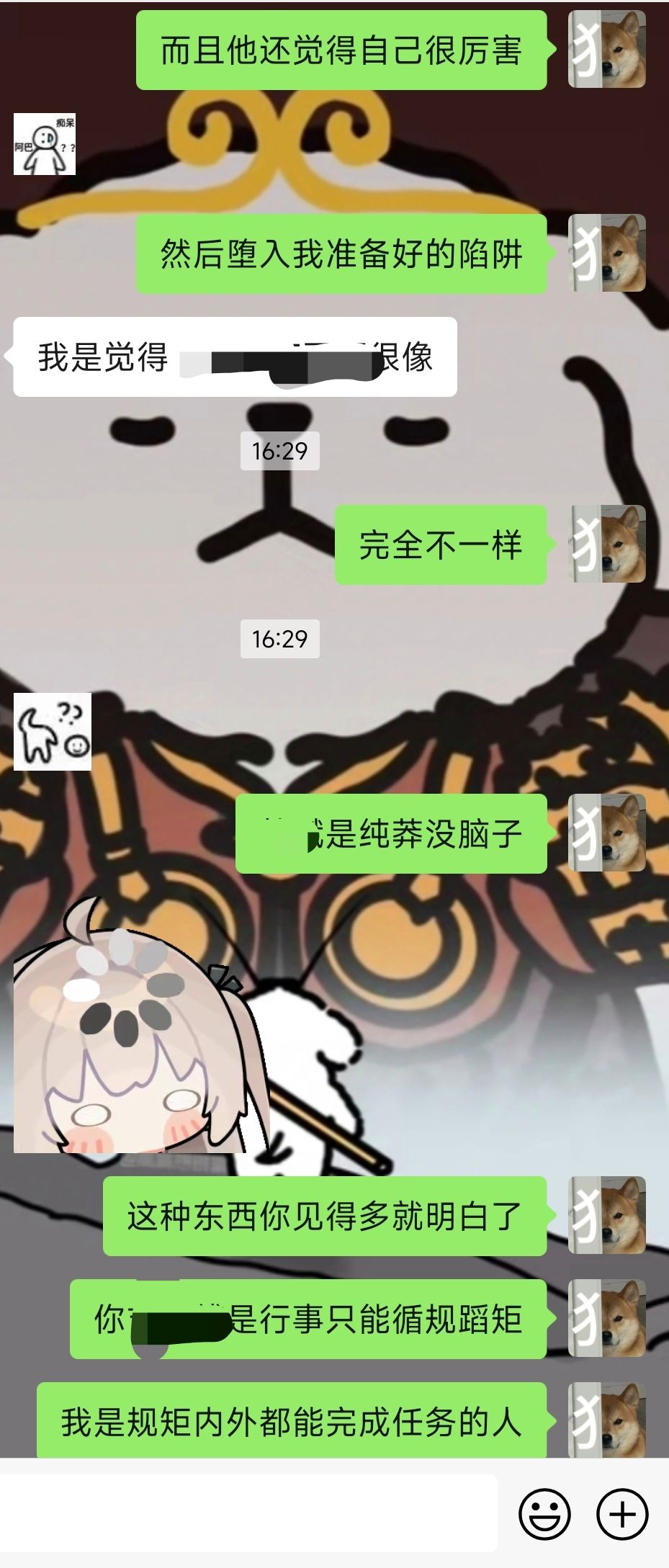 感觉动脑子能处理的事情都是小事,特别是遇到这种类似关系户的人来说更是。自以为是和愚蠢是我最喜欢的人,只需要一点点的甜头就能为我驱使,在不需要的时候及时替换,不培养不投入自生自灭。小小的实验得到的结果还是一如既往的相同。