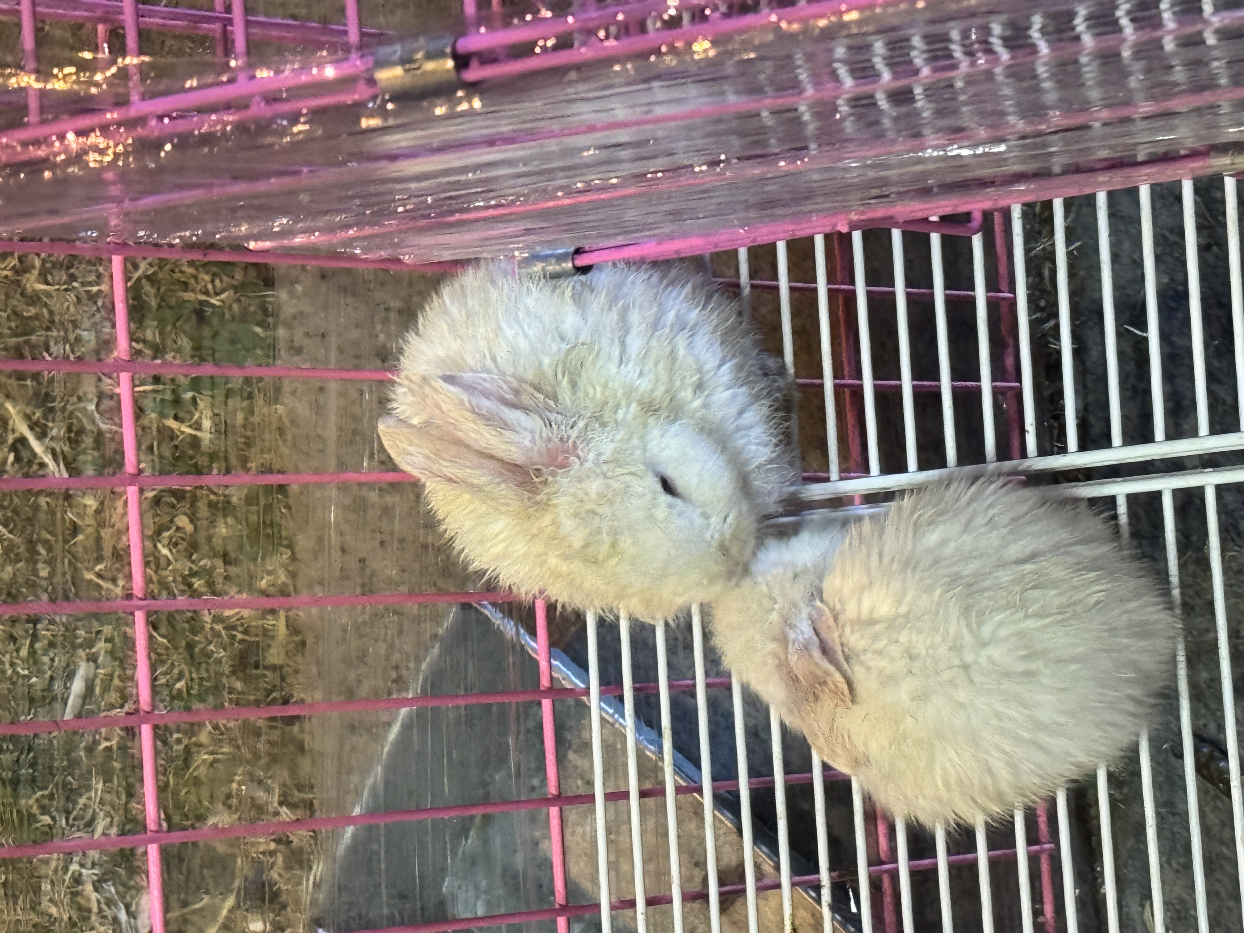 小兔子的毛好像被同笼子的小狗给舔了哈哈哈
