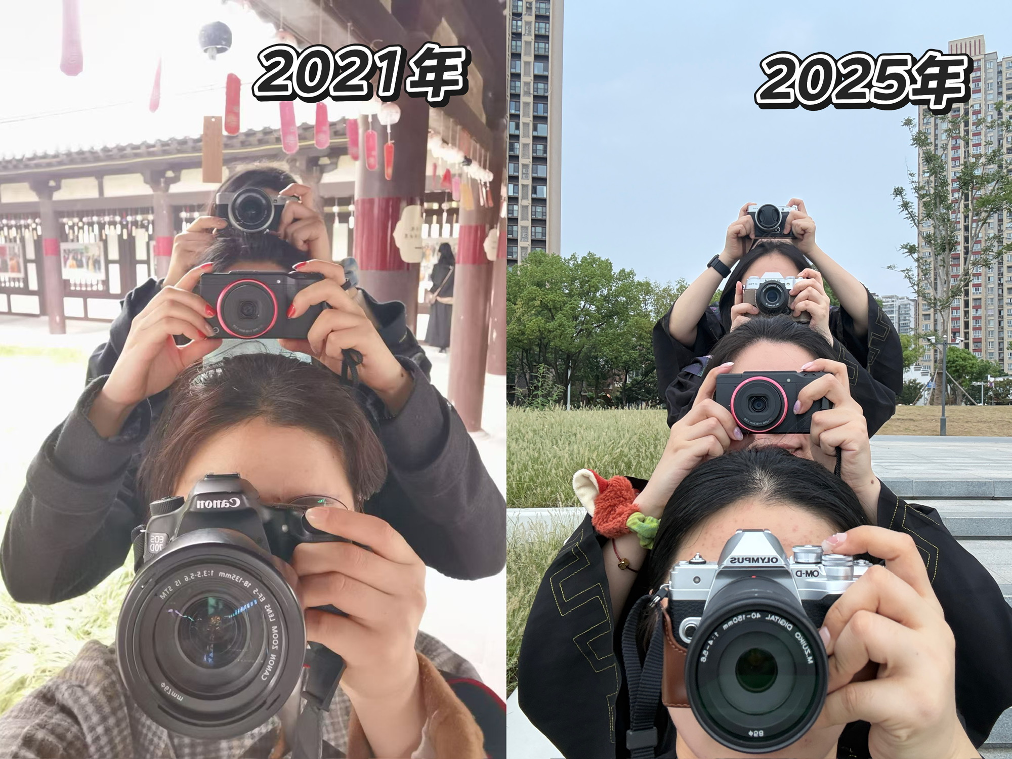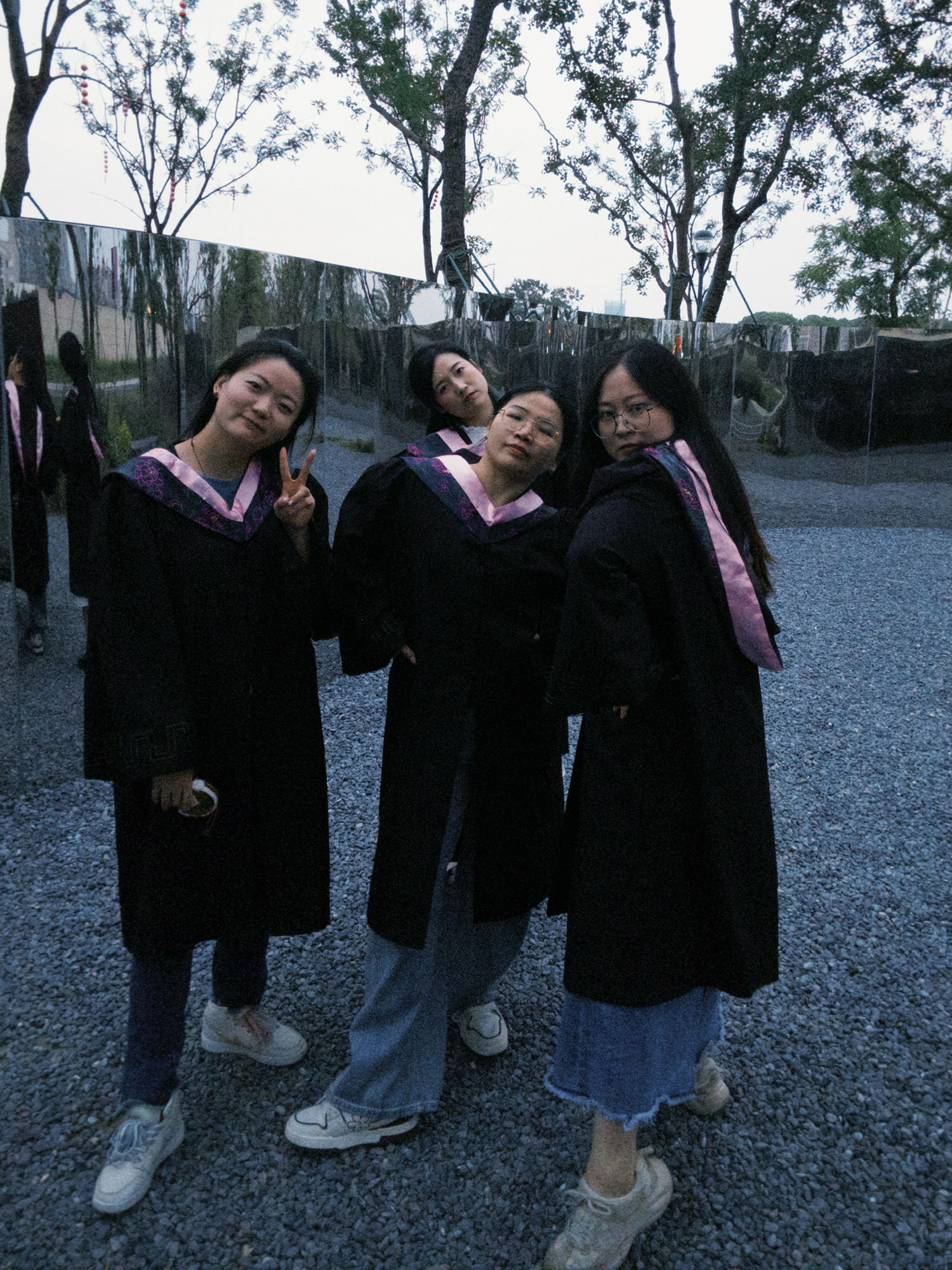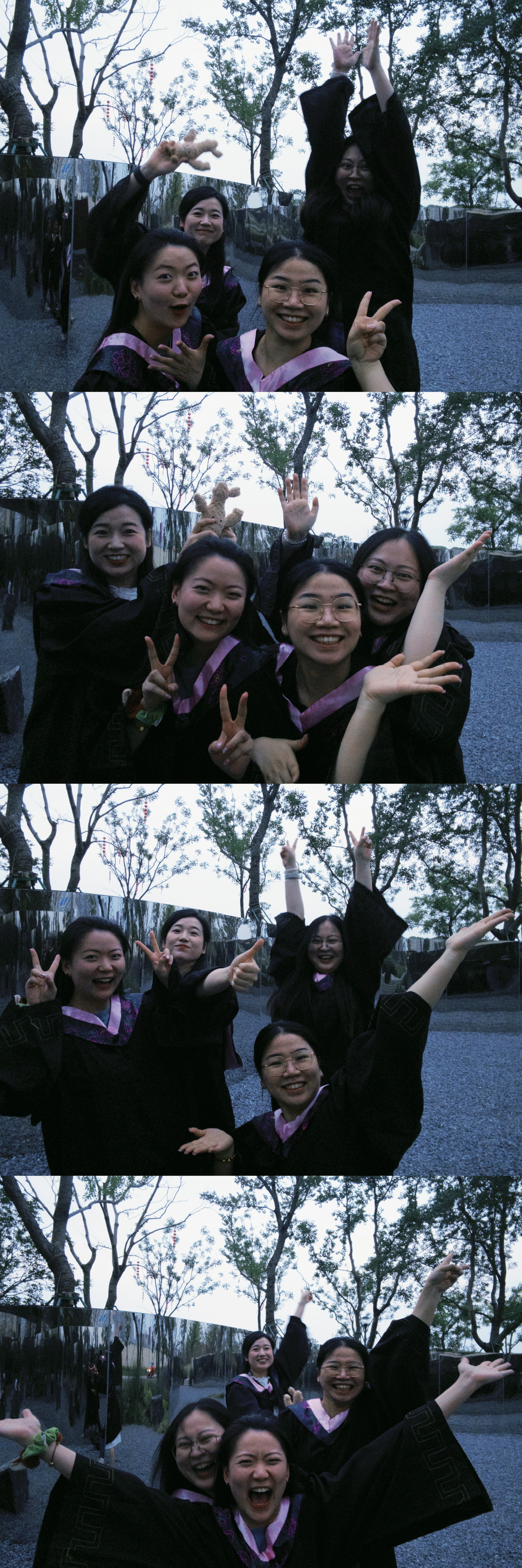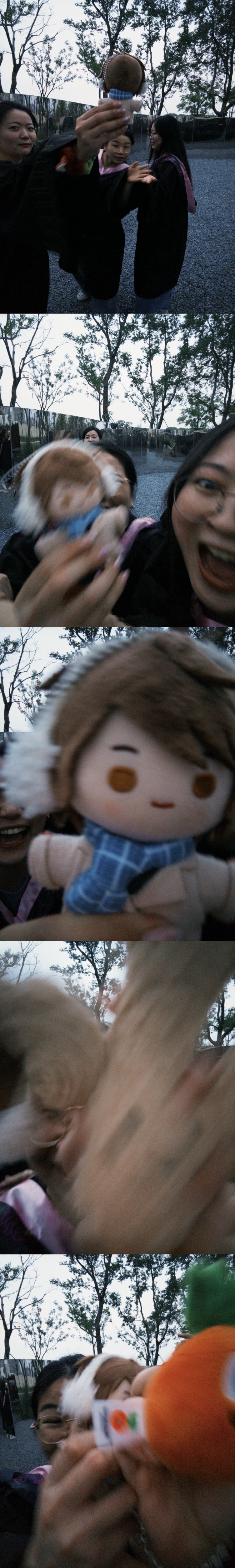 她们天南海北一个找一个、一路集合。去苏州偷偷给我盖了百喜图,租了学士服弥补我没拍上毕业照的遗憾。火车站接上她们顺便去拿礼服、她们抱着只露出手的样子。