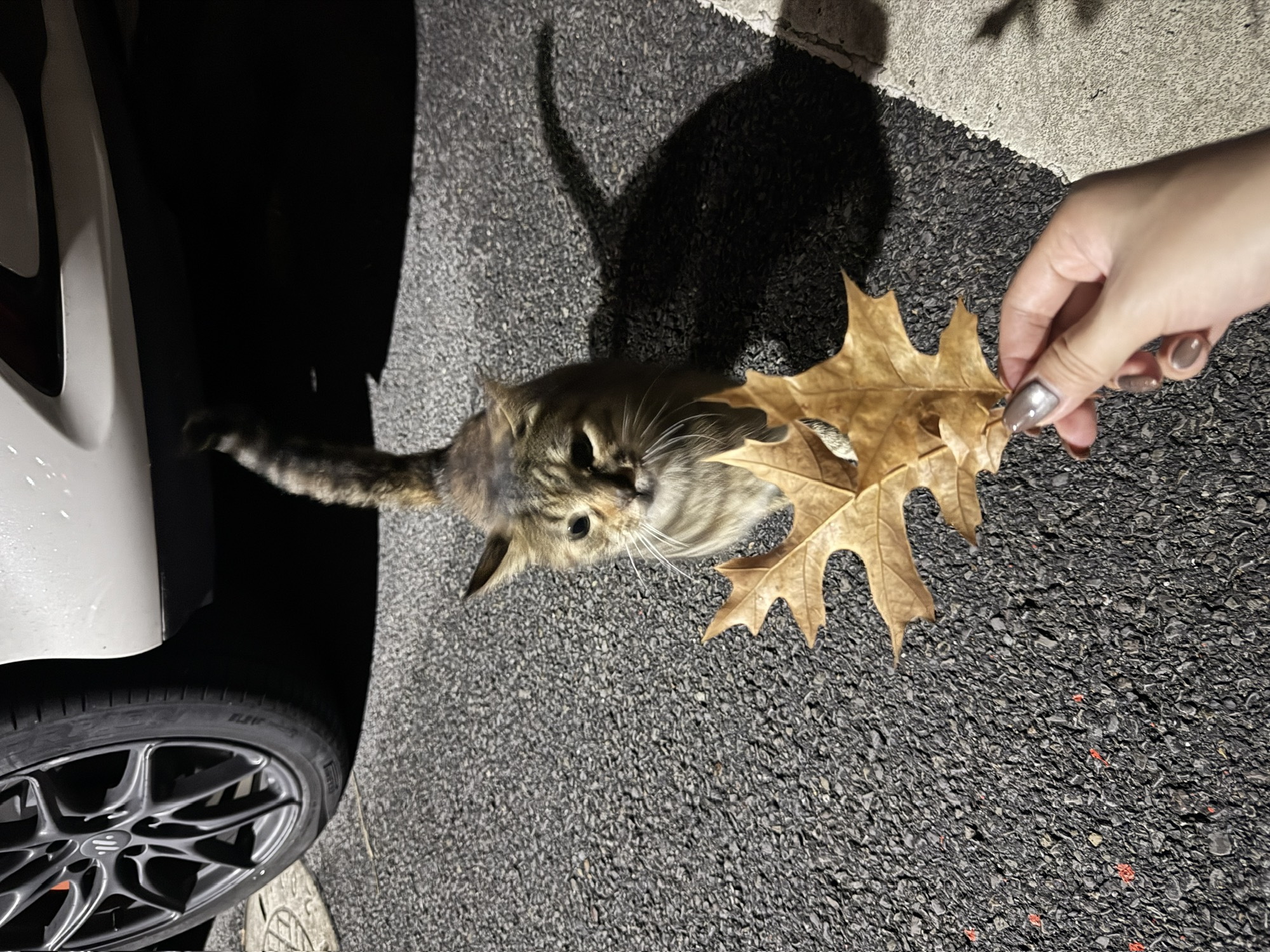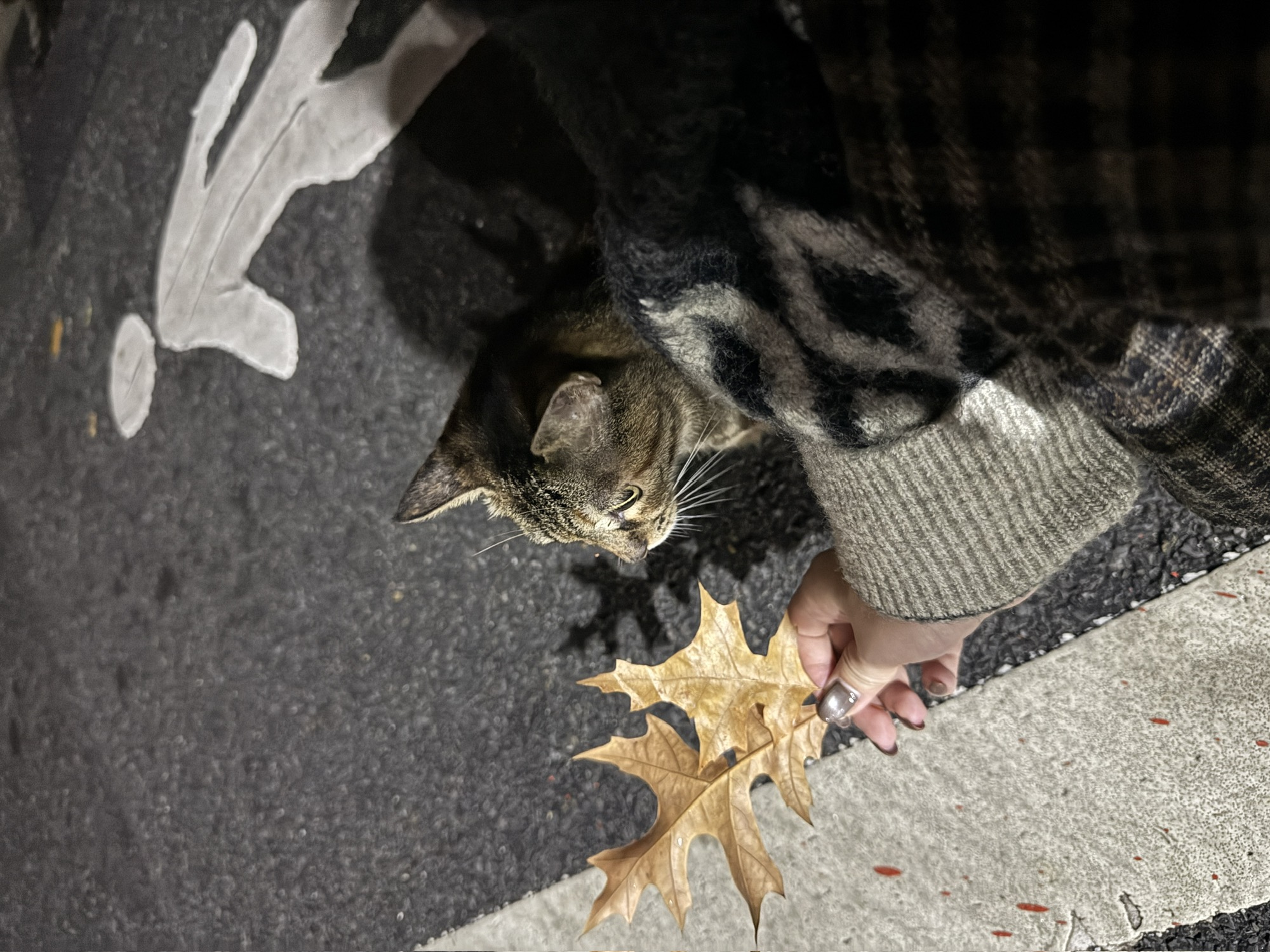 散步落叶小猫