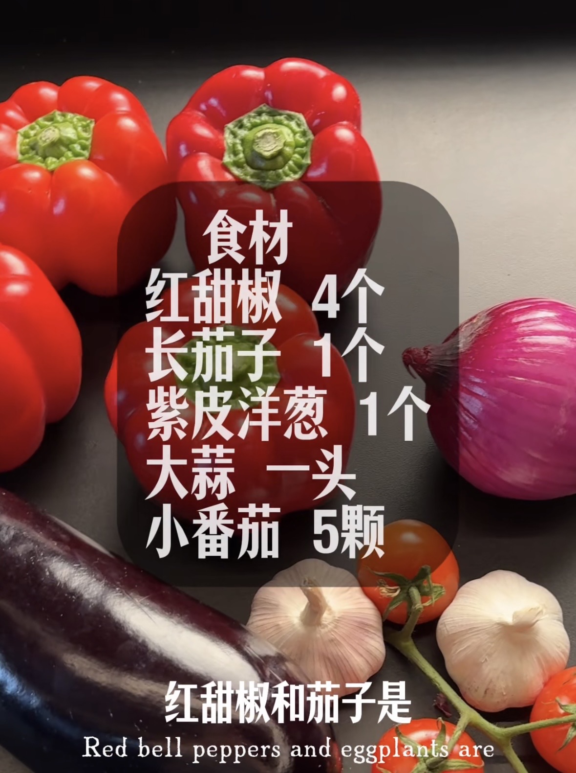 红甜椒和茄子是这款酱汁的主体,甜椒如同优雅的女高音,提供鲜亮的颜色和果香,茄子则像男中音,增加质地的筋骨和大地的风味,我用4个甜椒搭配一个茄子,你也可以设计你喜欢的比例。