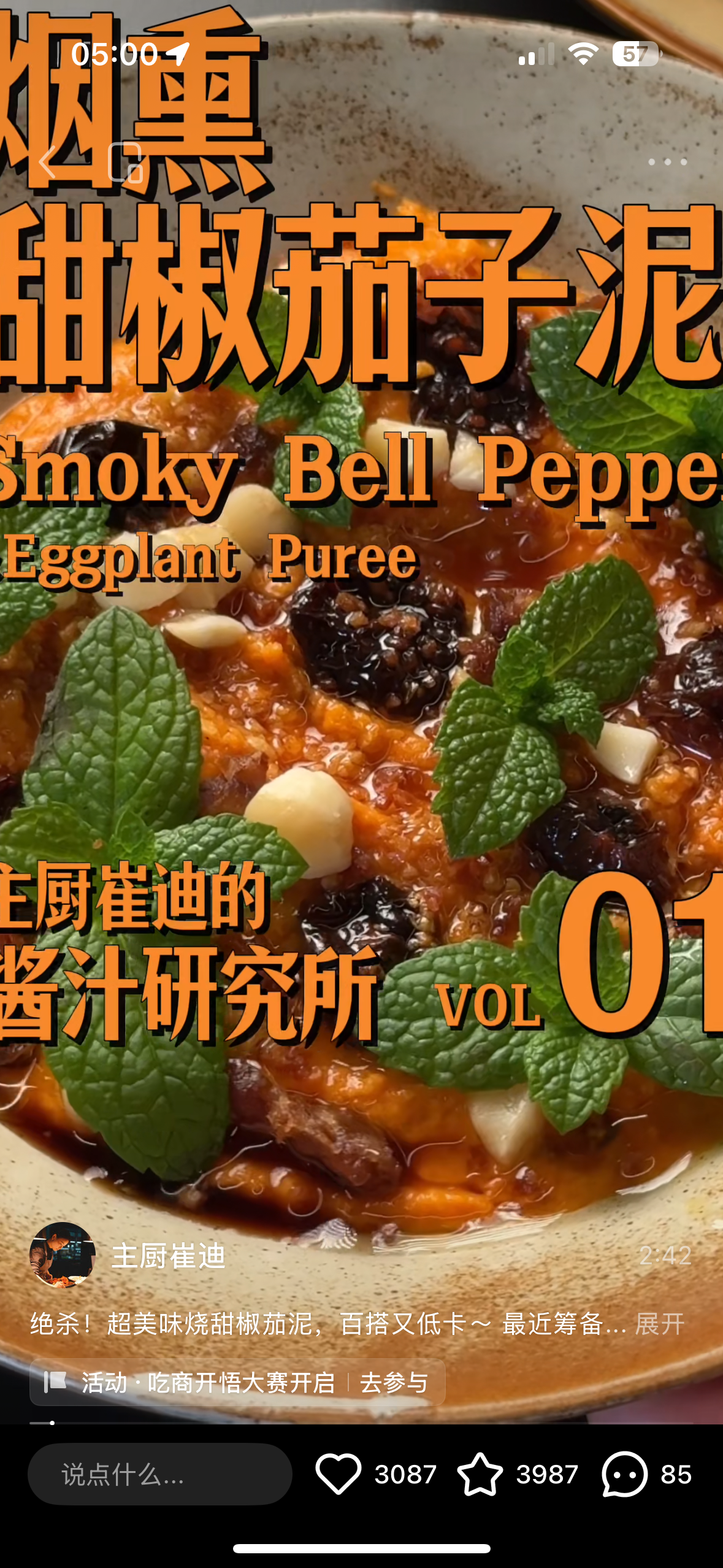 欢迎来到主厨崔迪的【酱汁研究所】,今天给大家分享一个万能酱汁——烟熏甜椒茄子泥的制作方法。这款酱真的低脂、好吃又百搭,不管是配肉、配海鲜、抹面包都会成为点睛之笔。
