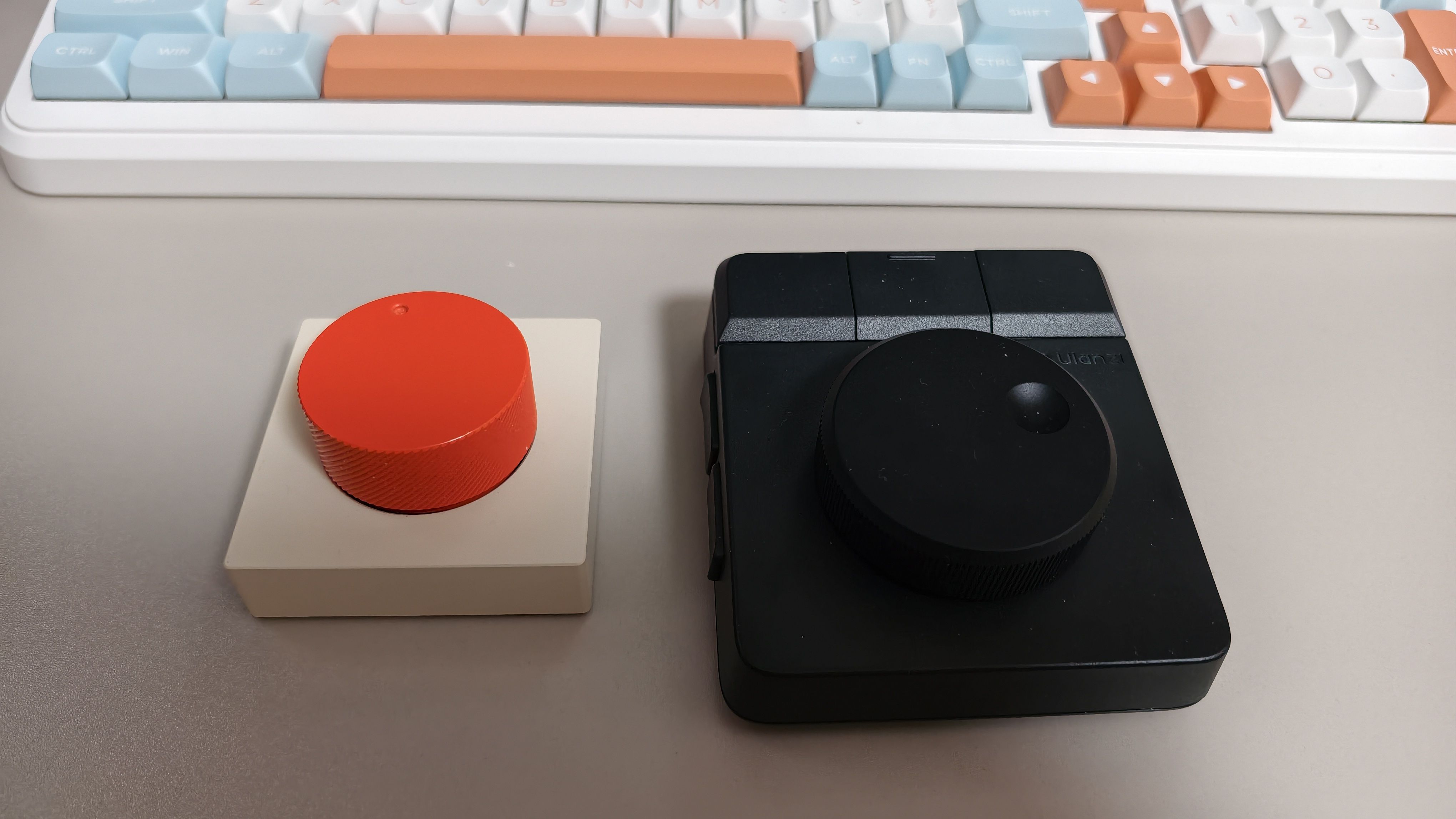 对比一下优篮子和反方向,优篮子还是大了一圈,而且刚开始用误触概率很高,因为到处都是按键,但是确实能精准对应到做后期大量组合键的痛点。