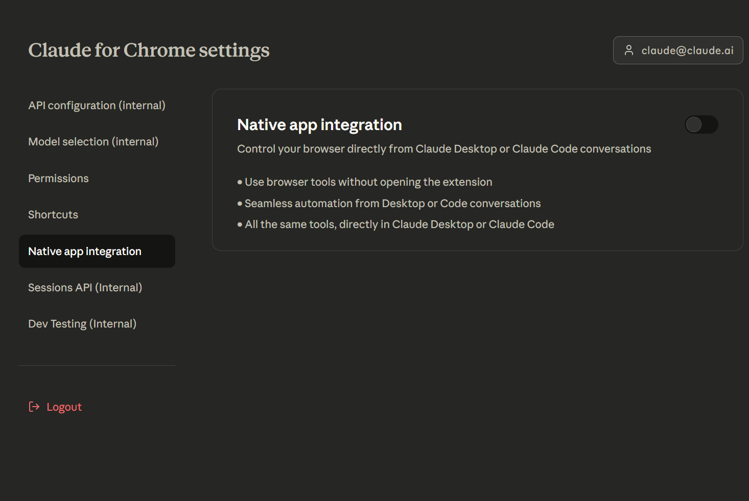 Claude for chrome 昨天有重磅更新,新增 Native app integration 功能,支持直接在 Claude code 或桌面端中操作浏览器(无需手动打开插件),直接干掉其他 Browser MCP / playwright MCP 等;另外好像取消了 Planning 功能。