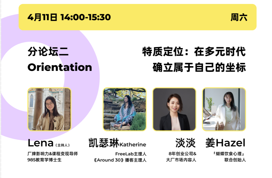 十几位特邀嘉宾涉及个人品牌、自由职业、身心健康、商业模式设计、AI与科技趋势、内容创业、自我认知与沟通等多个领域。