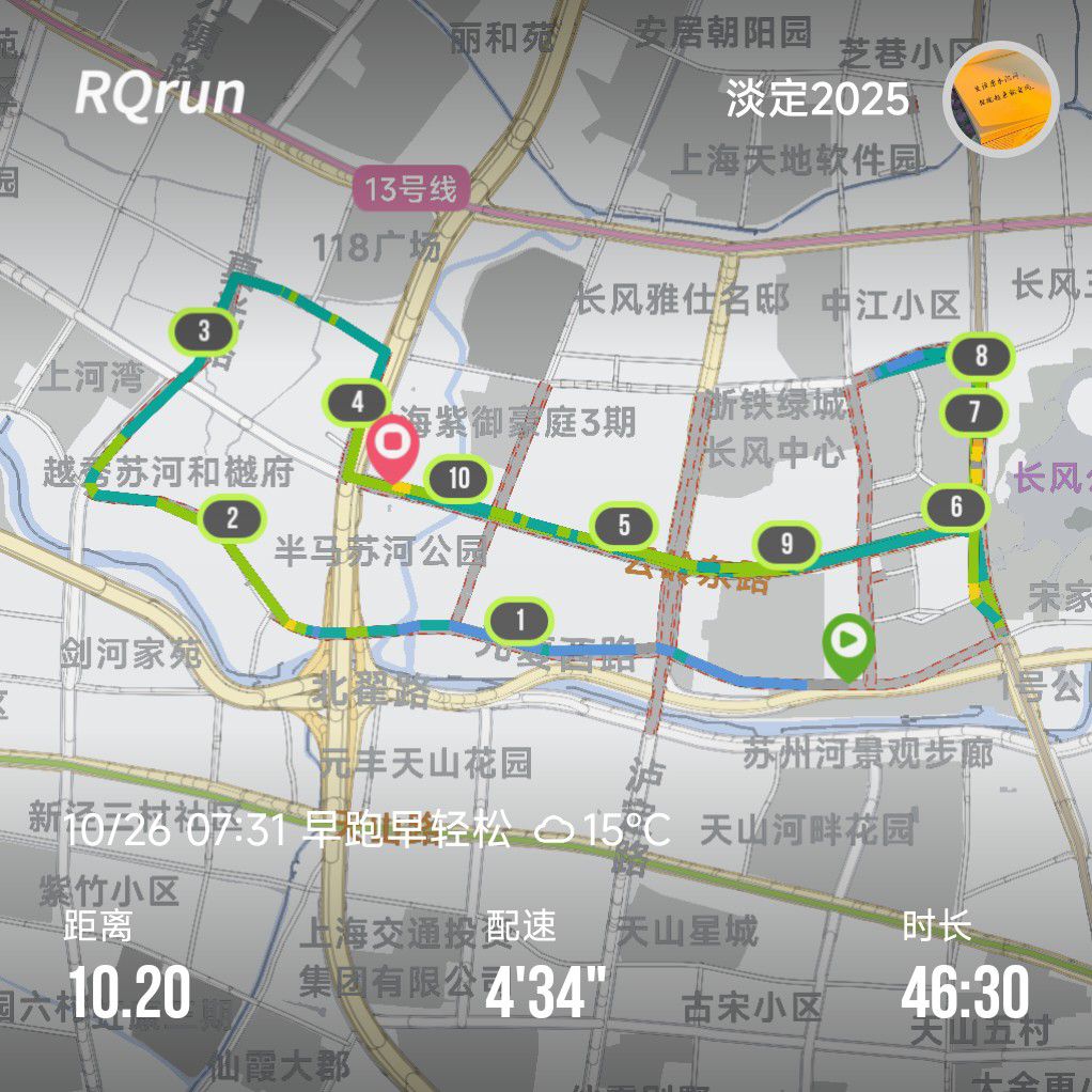 探索新路线,慢跑苏河南,长宁绿道也通连,一路直达从北往南,值得再来😄