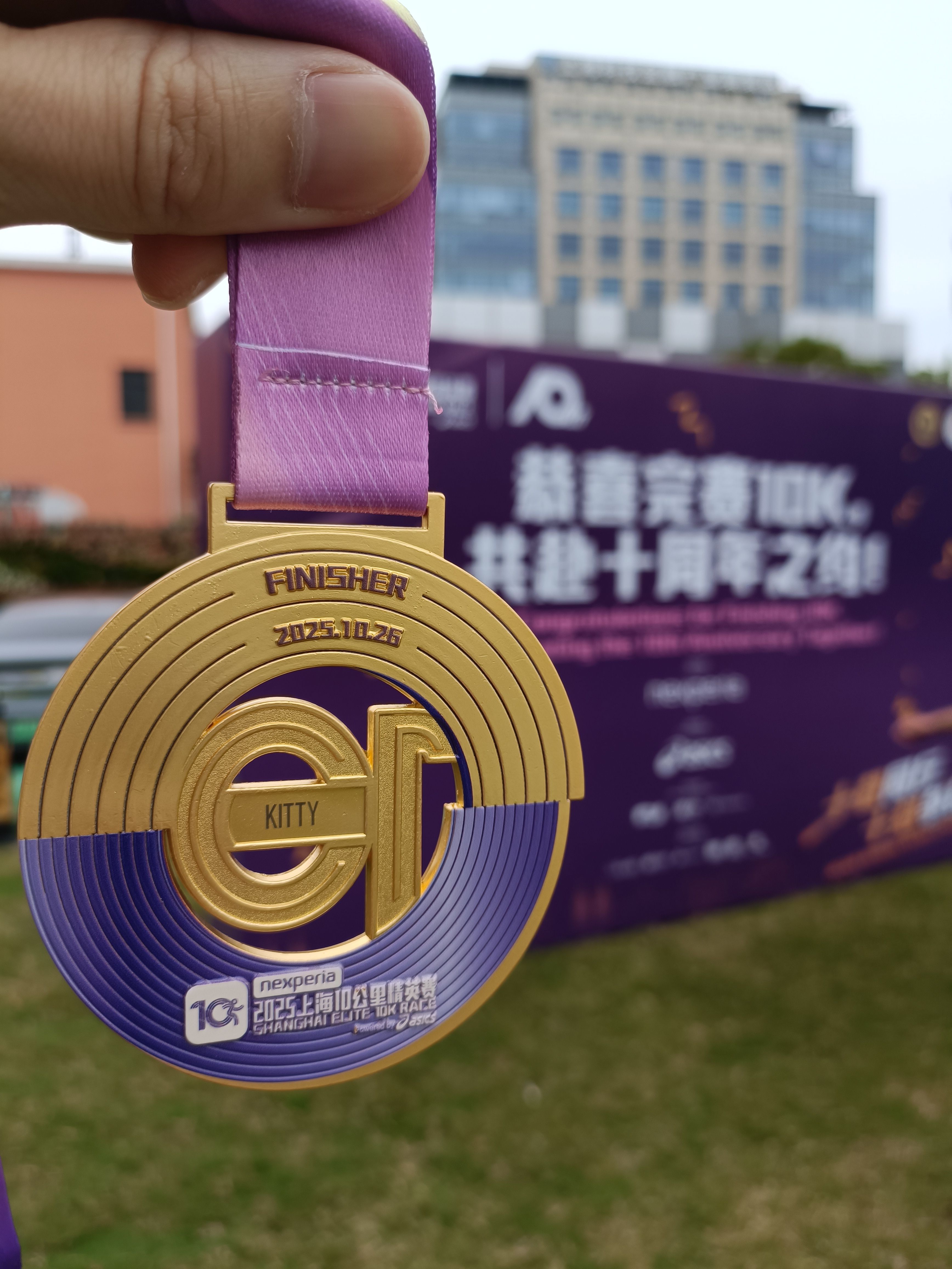 上海10公里精英赛,第一次中签🏃🏻♂️,不是精英顺利完赛,配速没破430,有点惋惜😔。赛后和苏州河半马一样,奖牌刻字服务独特👏🏻