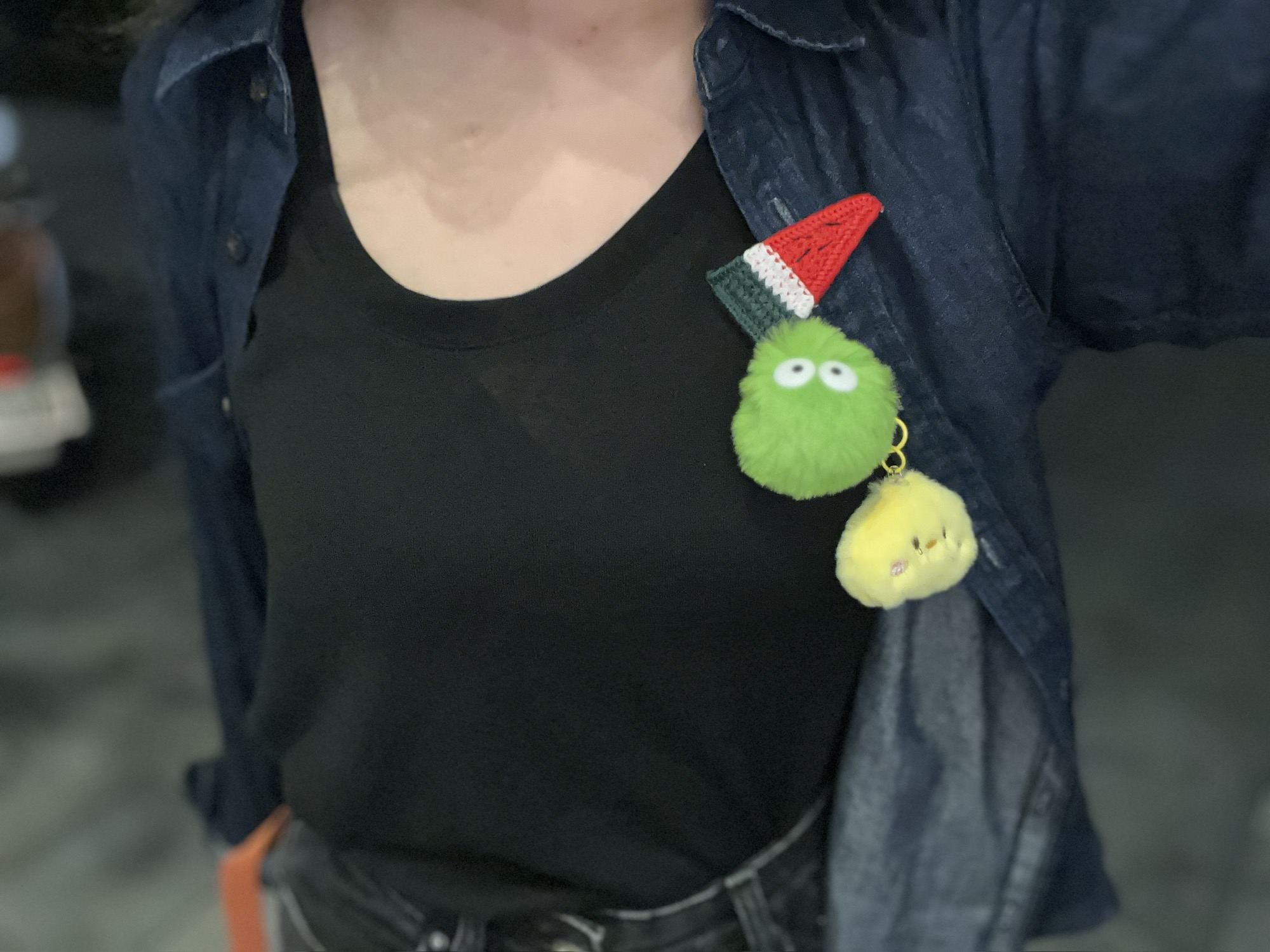 🤖在门口的小摊上选中了几个玩偶别在我衣服上🥺