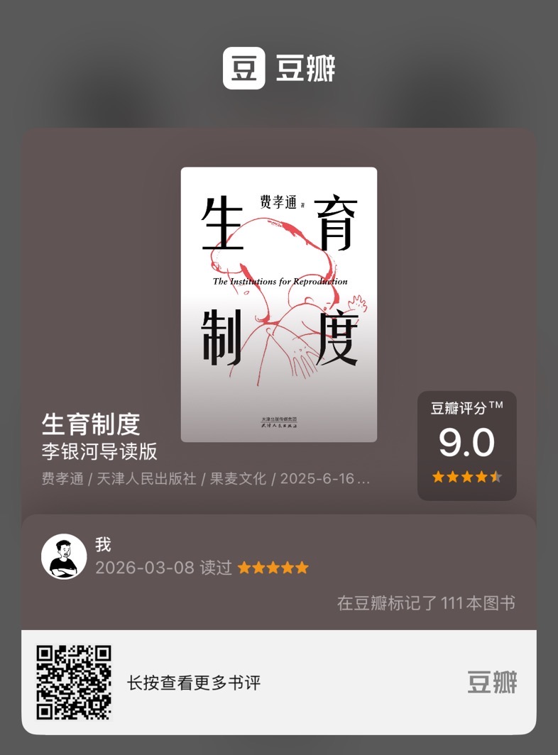 费孝通本人也曾说过《生育制度》是他自己认为写得最好的书📖