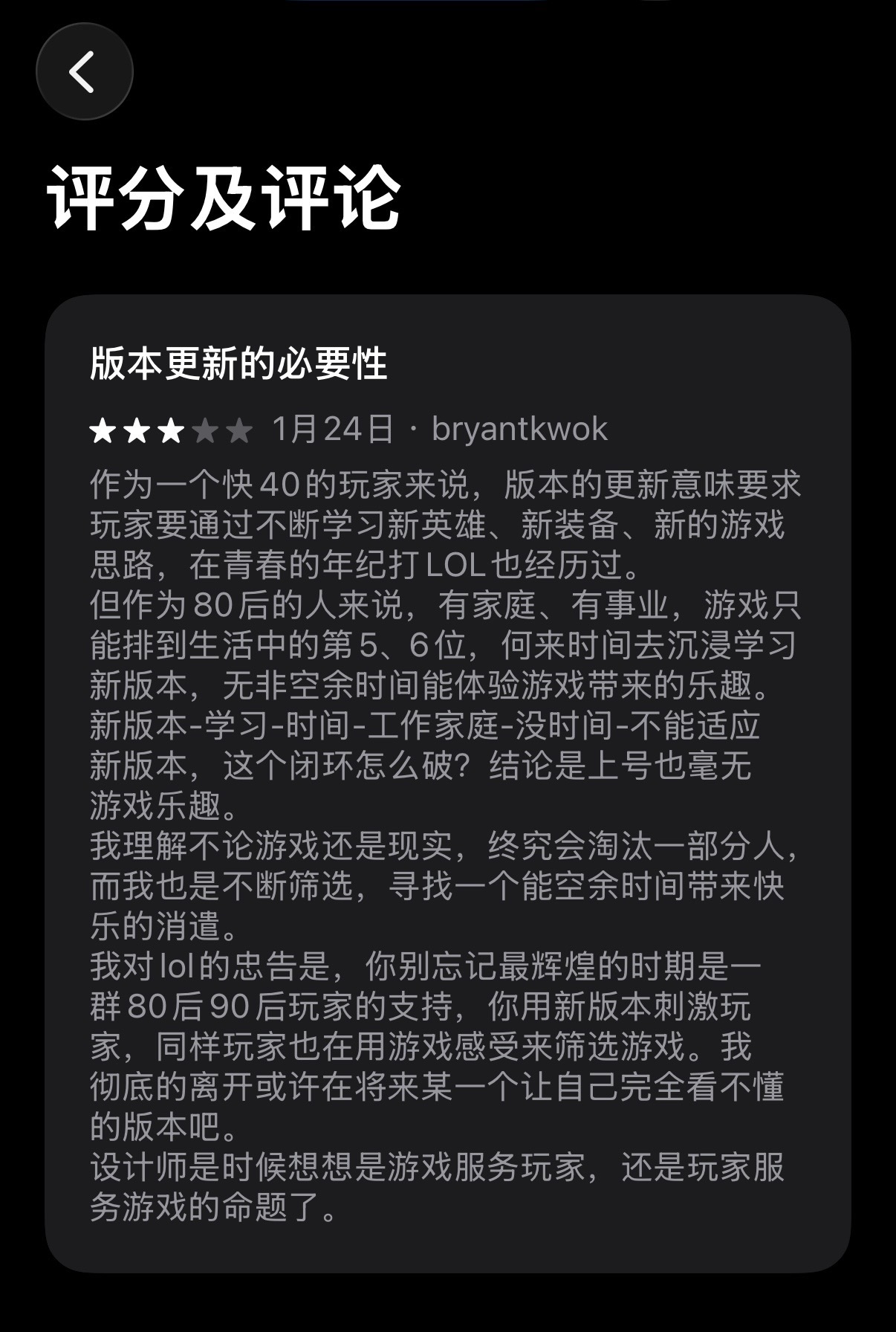 🟡常常有老玩家拉我去打lolm,而我已经卸载他很久了,只是每次想起他,会去App Store看看最新评论,看看环境是否好些了